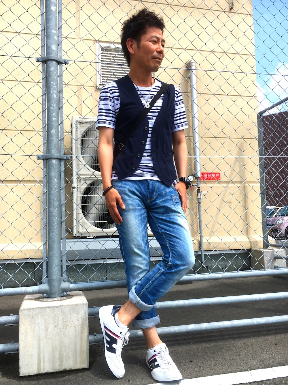 こんばんは〜♫ いつも見て頂いてありがとうございます😊 どうも僕です❗️今日は休日コーデです✨ 本日は休みで午前中に皮膚科に行き、 昼からイオンの美容室で髪を切ってみました😊✨ 結局休みでもイオンに来てしまった💦 普段から夏でも必ず何かを羽織るので、 久々に半袖で出掛けました😆今年の夏は初かもです😅 とりあえず、ジレ〈ベスト〉は着たものの 肘が出てると何だか落ち着かないですね〜😆 まぁ、私服で夏コーデをするのもお盆までかなぁ〜😁 早く秋色コーデを楽しみたいですね〜😊✨ いいね、SAVE、ありがとうございます😊 コメントまで本当に感謝です🙏🙏 皆様、明日からの連休お楽しみ下さいね〜😊 私も今から友達とご飯行ってきま〜す🍻