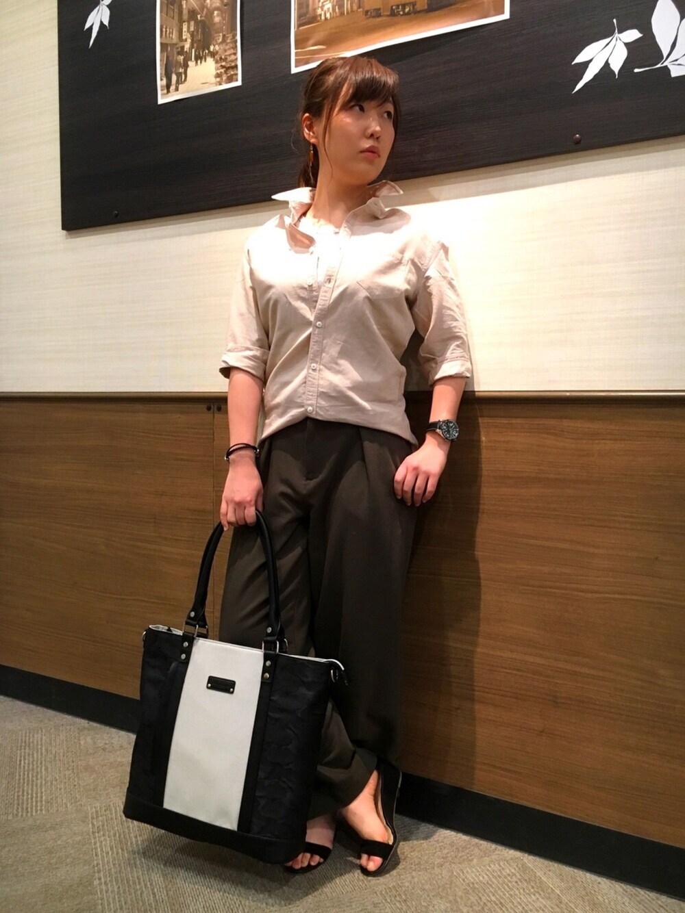 こんばんは〜(^^) いつも見て頂いてありがとうございます😊 いいね、SAVE、フォロー、嬉しいです😆 コメントまで頂き本当に感謝です🙏🙏 今日、鹿児島は雷雨でした☔️⚡️ 皆様、お住いの地域はいかがですか❓ 本日は女性スタッフにベージュのリネンシャツを 抜き襟でコーディネートしてみました❗️ リネンシャツのベージュって珍しいと思い カーキと合わせて小物は黒で統一しました❗️ 大人なシャツスタイルのイメージです👍 インナーの柄Tシャツがわかりづらいので、 小窓に別ショット×2もつけました❣️ そちらも見て頂けると嬉しいです♫