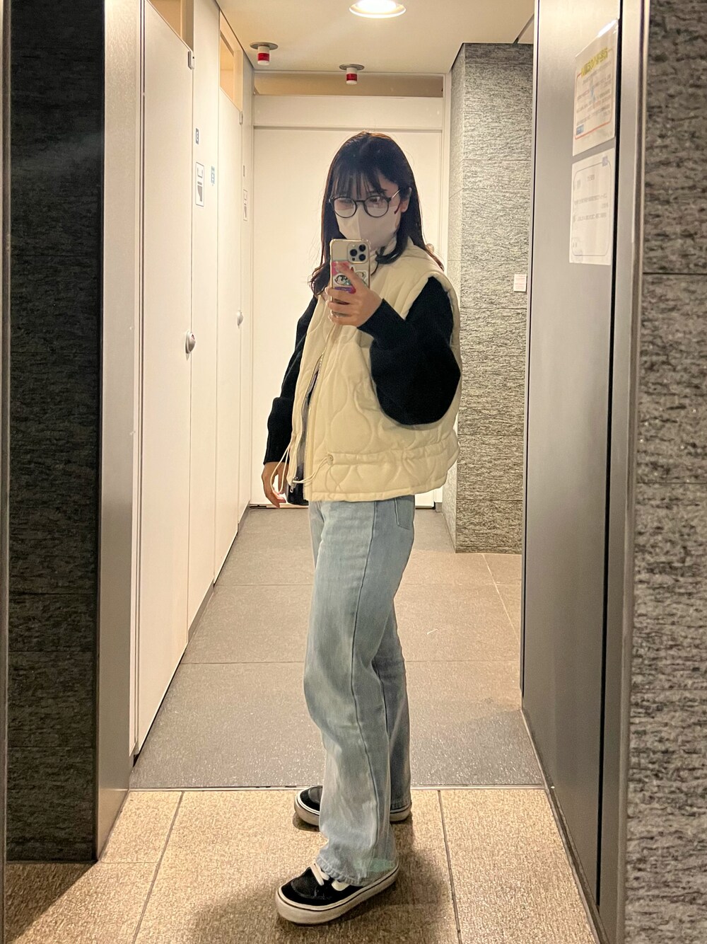 最近朝と夜以外はあったかいからダウンベストがちょうどいい☀︎