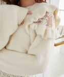 肩部分が透けてるシャギーニットはとっても可愛くてこれ1枚でアザトカワイイを演出できちゃいます🎀 またシューズのリボンは取り外しが可能なので場面な応じて雰囲気チェンジすることも可能です!