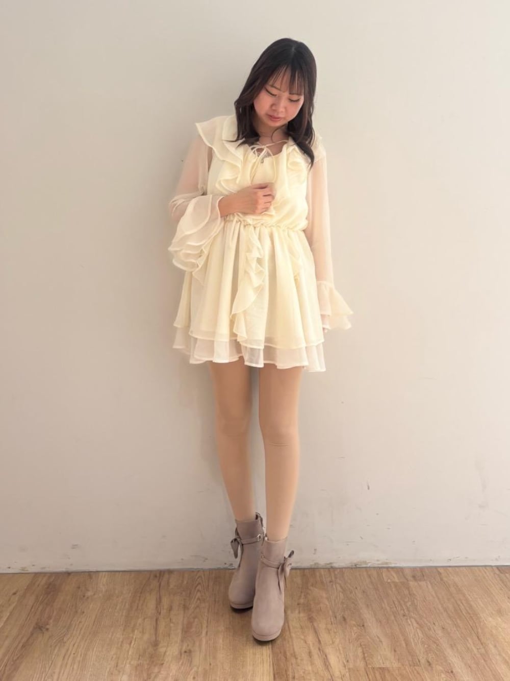 ひなの(MAJESTIC LEGON )のブーツ「3WAYビジューリボンブーツ」を使ったコーディネート