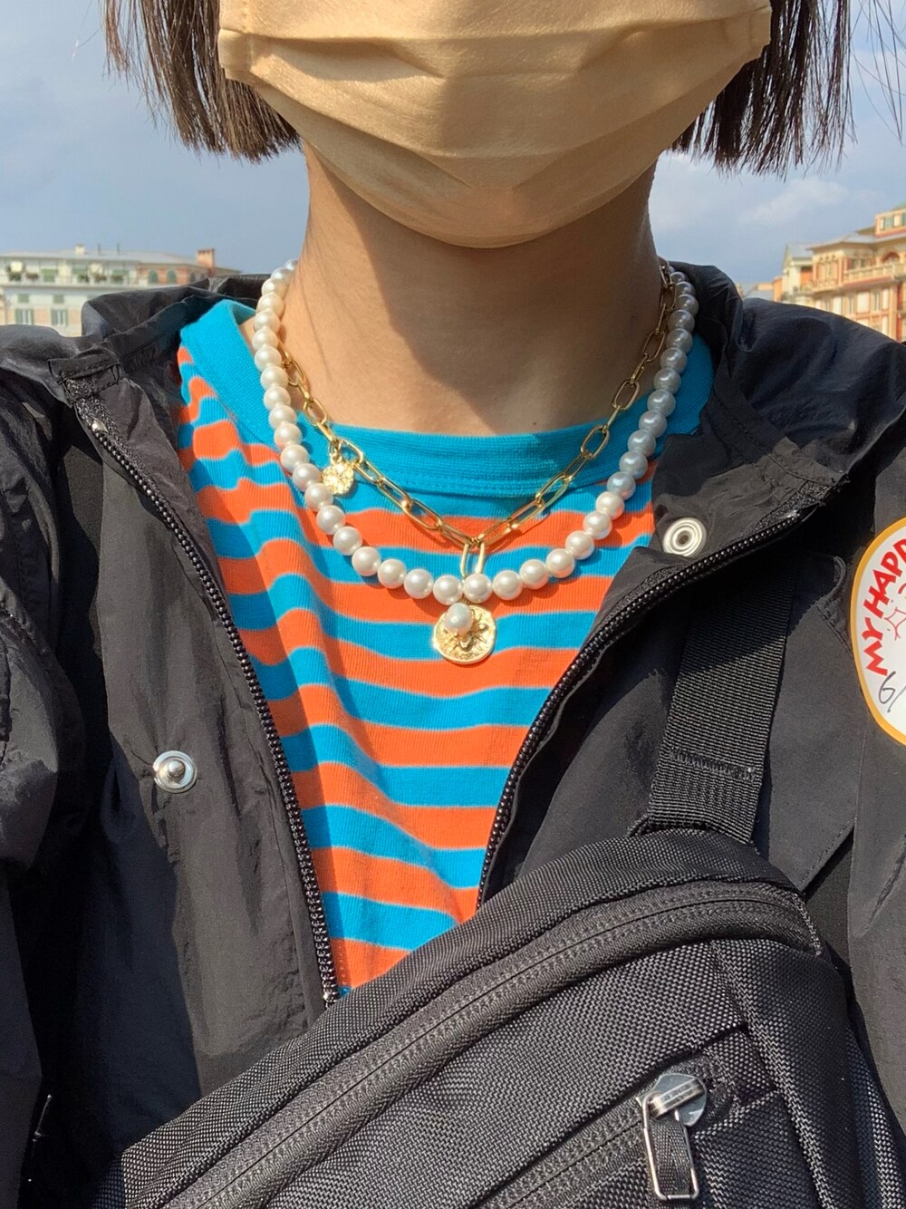 本当はこの日、 ENFOLDの👗(黒)(お気に入り)も 着ているのですが、 見切れているので割愛🙏🏻🍵 オレンジとブルーのボーダーで ひとり「ファインディング・ニモ」を 目指しました (ニモとドリー🤣) @Disney sea