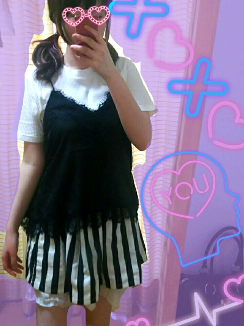 黒のキャミソールは一着で大人っぽくなるから便利🐼🌑🌑🌑🌑🌑🌑 白黒でまとめたー🐼🐼🐼🐼🐼