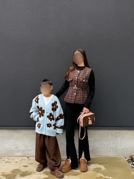 きのこヘアの5歳男の子👦🏻と ぽちゃ母👱🏻♀️のコーデ記録👗💕 ____👦🏻117㌢/ 23㌔🦖⋆͛____
