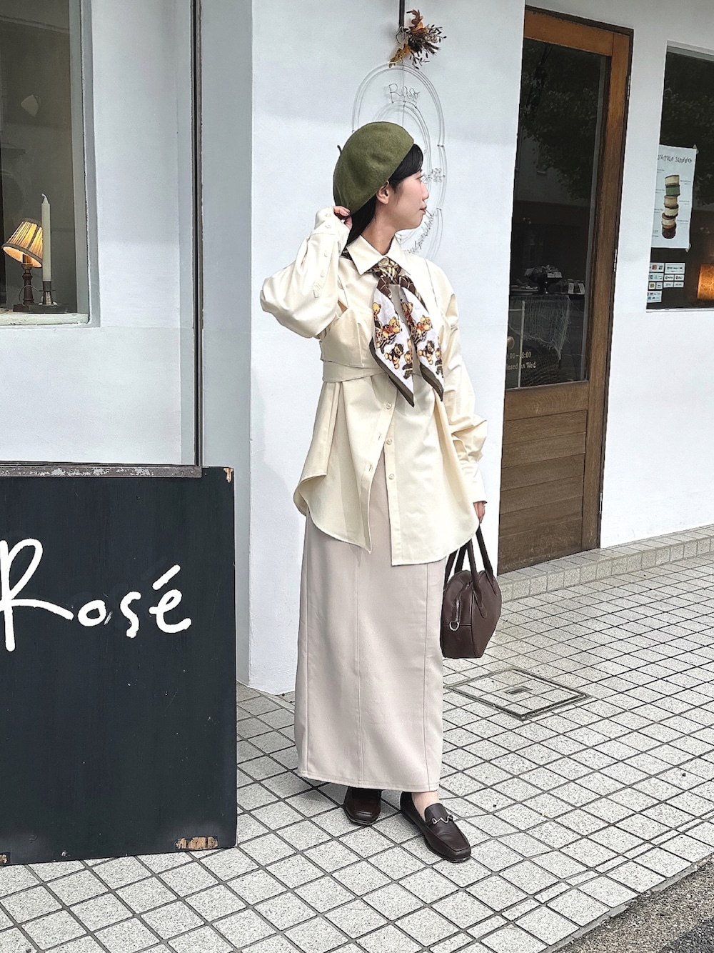 ご覧いただきありがとうございます! 今回は一昨日発売されたGU×rokhの コラボシャツをレトロな雰囲気に 落とし込んでみました! ベレー帽とスカーフの色味を揃えたのがポイントです♪ インスタもプロフィールから飛べるので良ければフォローよろしくお願いいたします🌷✨️ @10.atm.12