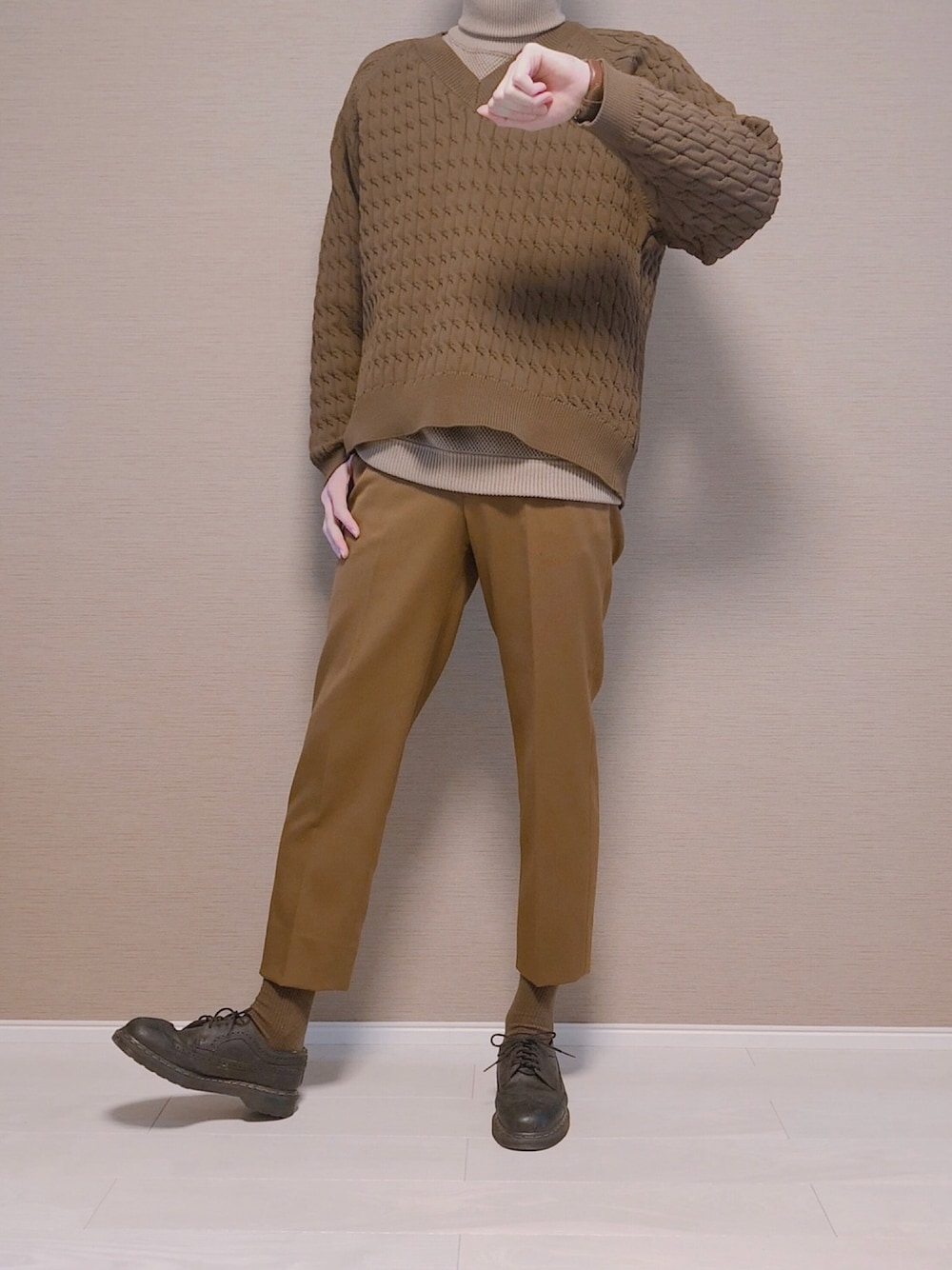 こんにちは! コーデのテーマは ・ブラウンコーデ です! ◾️Point!!!✨ 1.アイテムの色を統一しました 2.ニットオンニットで防寒対策も 3.スラックスでキレイめを ◾️Size!!!✨ Knit:M Knit:2 Pants:M Shoes:uk9 です ◾️diary 本日はブラウンコーデです! 最近ブラウンアイテムを使ったコーディネートとても気に入ってます 今年の秋が楽しみです← いつもご覧になってくださってくれている方ほんとにありがとうございます!🙇 初めて見てくれた方もよければ、これからもお願いします🙏 Instagram:tom___7101 です!(アンダーバー3つです) プロフィールのリンクから飛べるのでもしよければフォローお願いします!😊 また今年からブログを始めました! 服についての注意点や細かいところを紹介していくのでよければそちらもみてください!(多くの方にオシャレに見せたい、オシャレになりたいという方にfocusしたブログです!) こちらもプロフィールのリンクから飛べるので是非ご覧ください🙇♂️ ではまた!👍