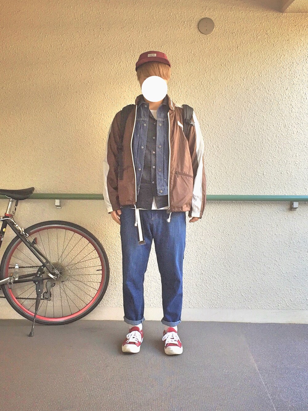 こんばんわ!今日は忙しくて投稿が遅くなってしまいましたが、良かったら見てください(^O^) デニムオンデニムするなら、やっぱ同系色の方が整いますね‼︎