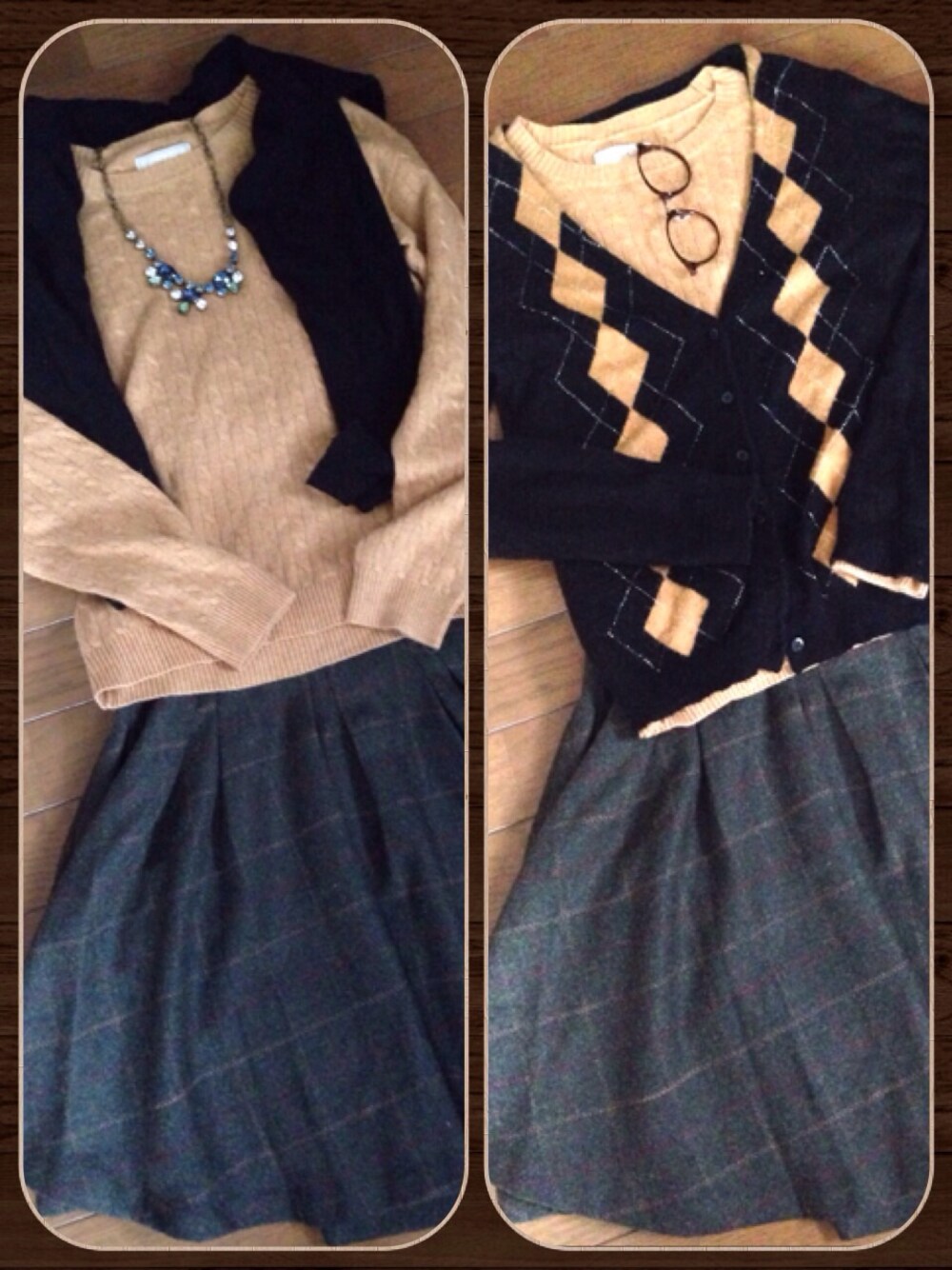 トップス:Ungrid カーディガン:mystic スカート:Ungrid ネックレス:Ungrid ダテメガネ:Ungrid 秋コーデ(=゚ω゚)ノ