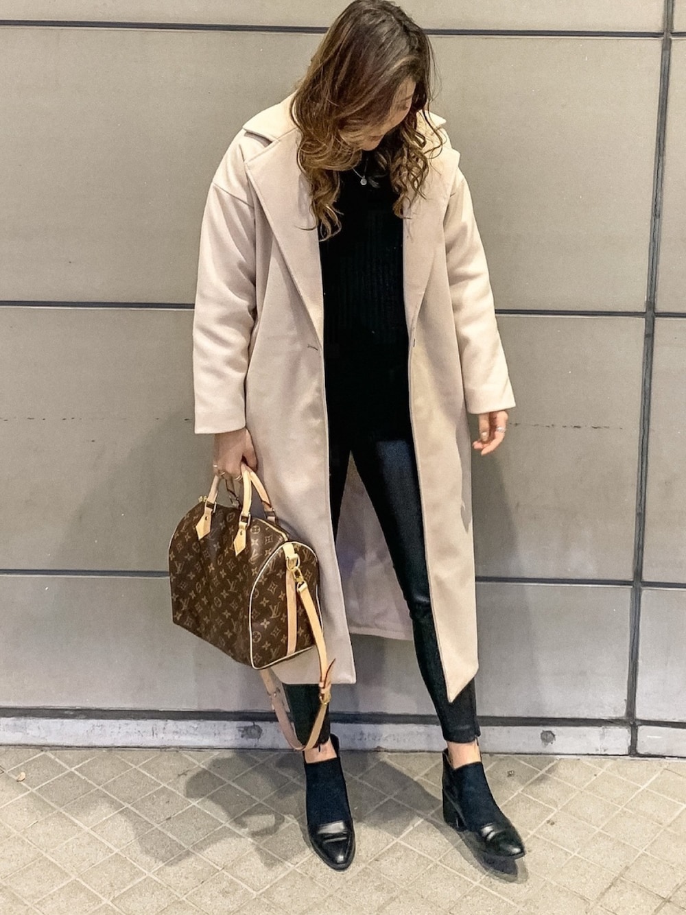オールブラックに アイボリーのコート🧥