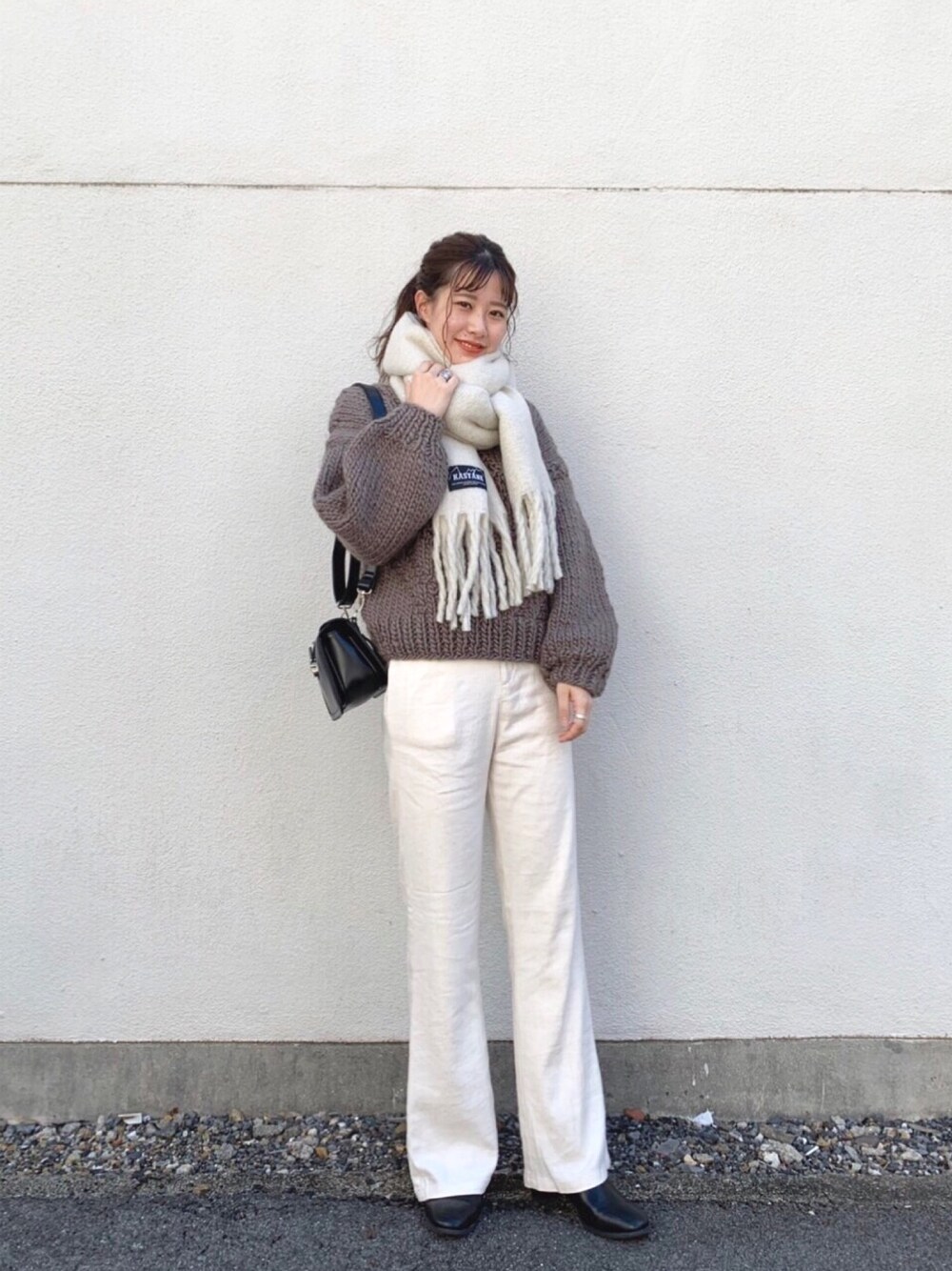 kitagawa mikiのマフラー「太フリンジマフラー」を使ったコーディネート