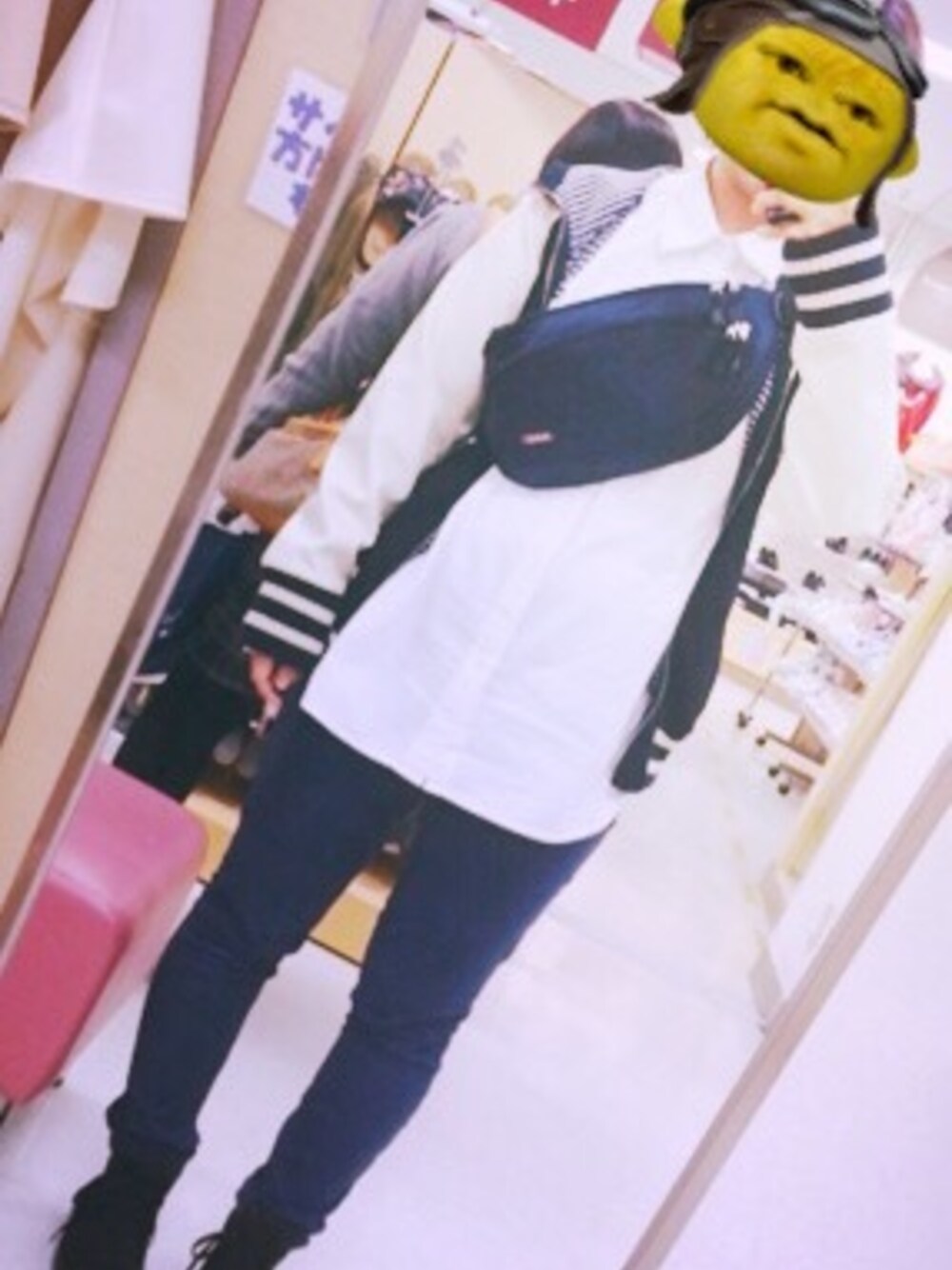 所謂、彼シャツというやつ笑 白黒青の統一コーデ。