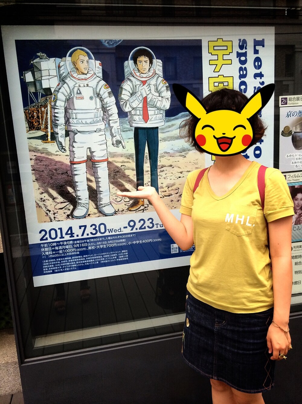 京都に来たよコーデ たまたまみつけた宇宙兄弟展。 見たかったけど開館時間過ぎてた… 歩き回って回って2万歩達成! Tシャツも黄緑。 写ってないけど長靴もメジロ(黄緑)カラー。
