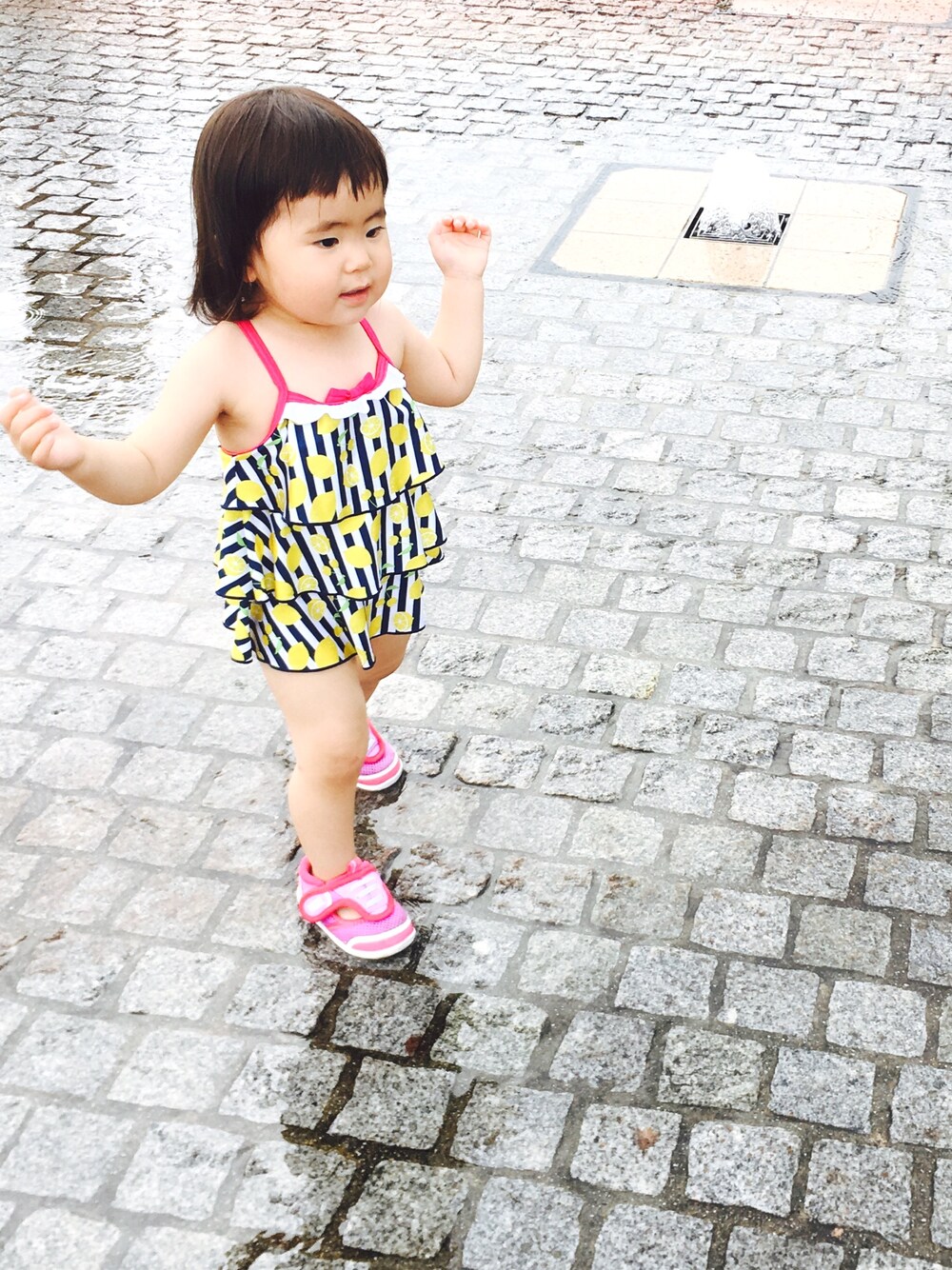 人生初❤️ 外で水遊びして来たょ✨ ビビって入るのは足だけ(笑)
