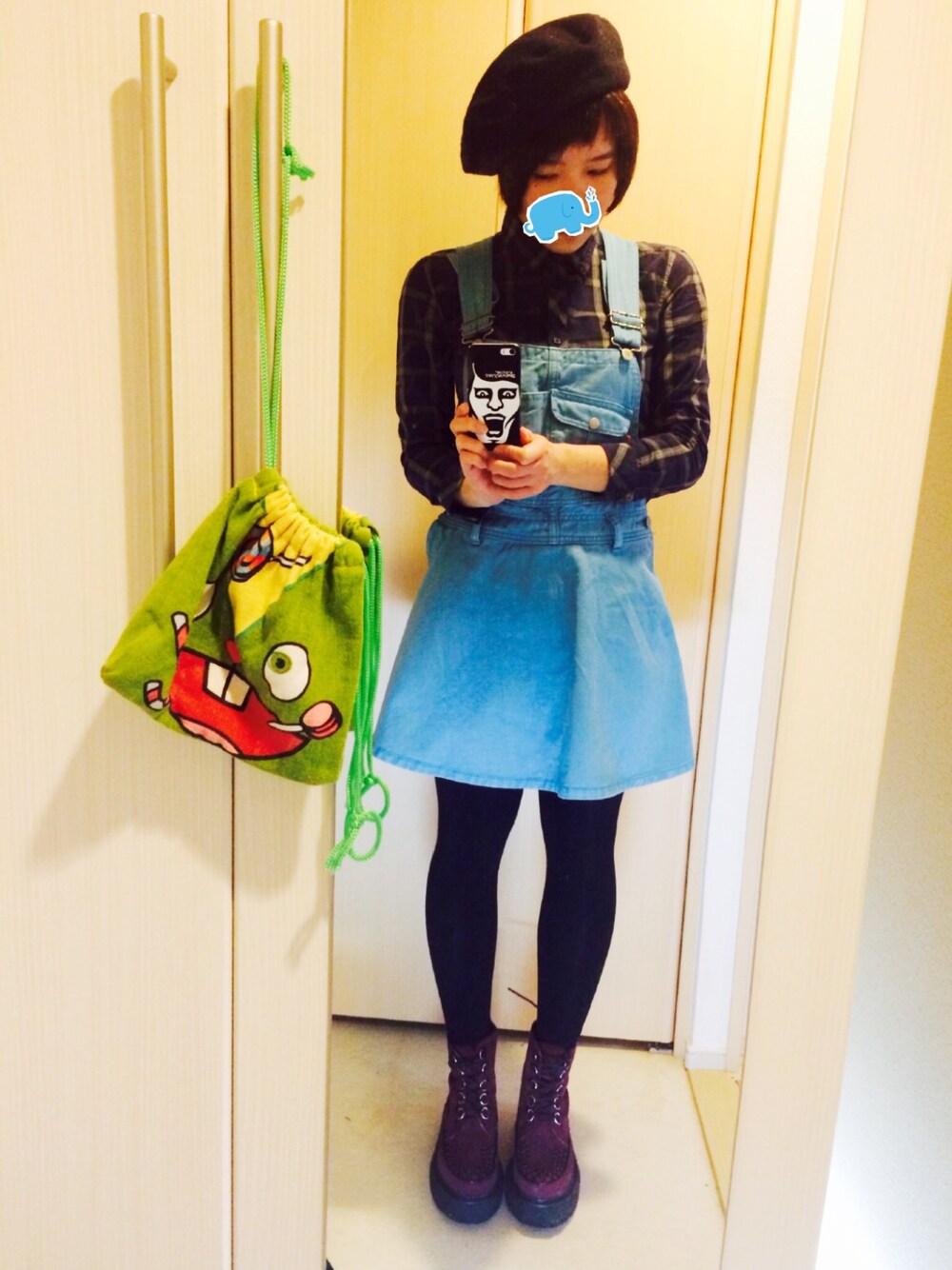 シャツ、帽子@古着 実はパンツなオールインワン シャツは一番上のボタンまで締めたい系です。 昨日の晩は奈良までドライブ! シカがいた!触りたかった…!
