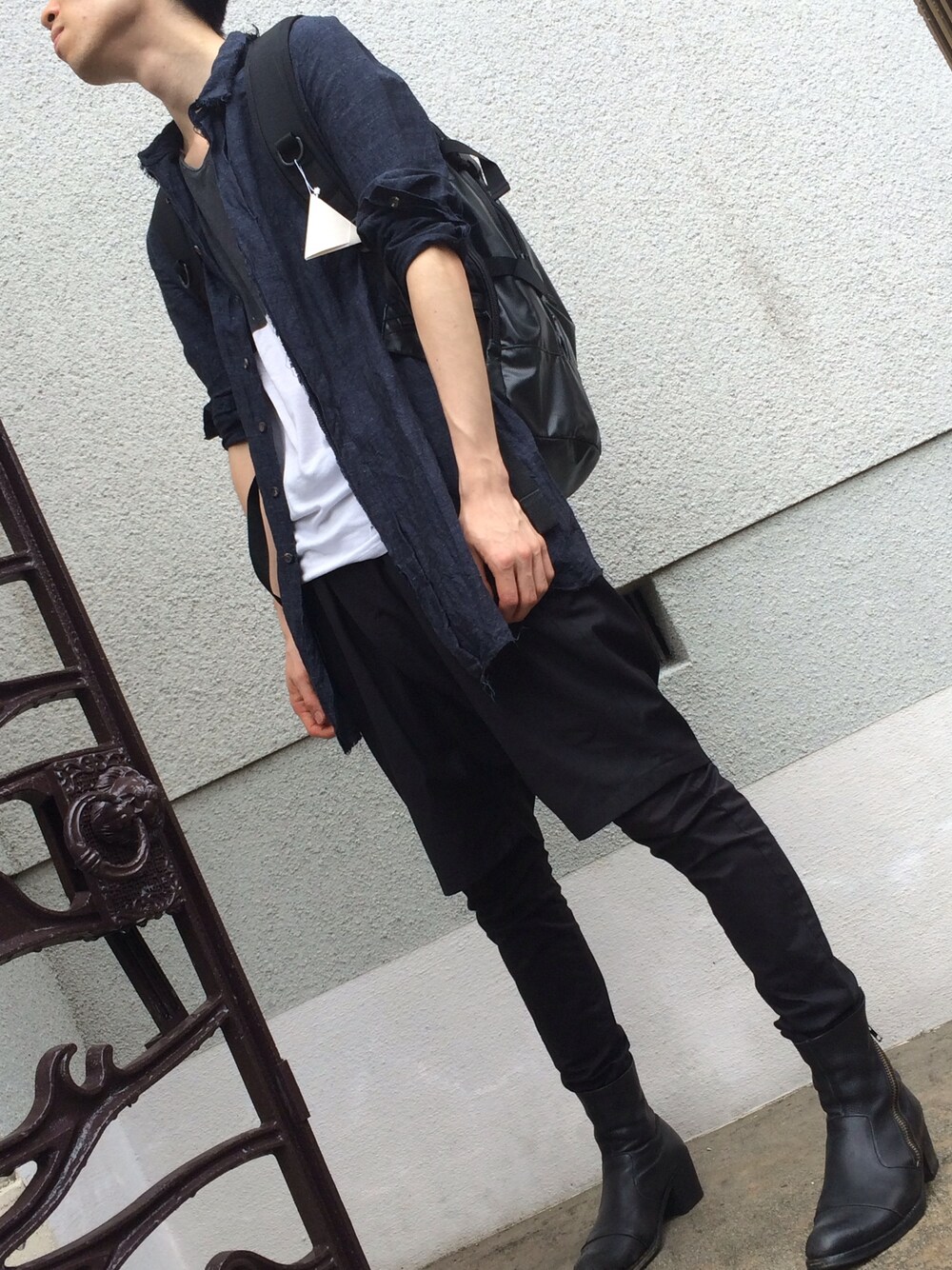 s/sロングシャツSTYLE 今日むし暑い日でした こんな日はTシャツに麻のシャツ で少しでも涼しく