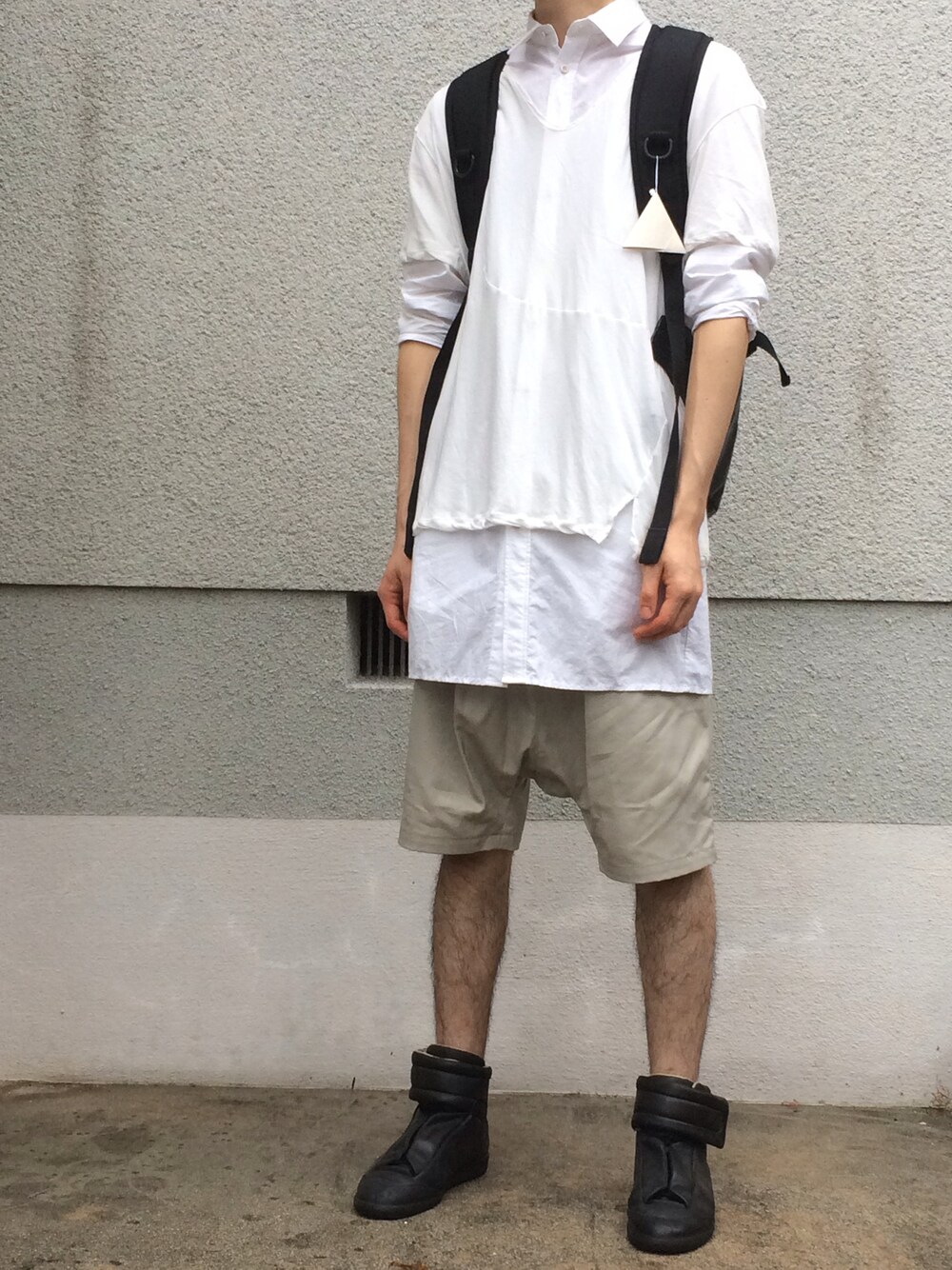 s/sハーフパンツSTYLE 雨が降ってますが 気にせずパシャリと一枚 roodのロングシャツ roodのハーフパンツ