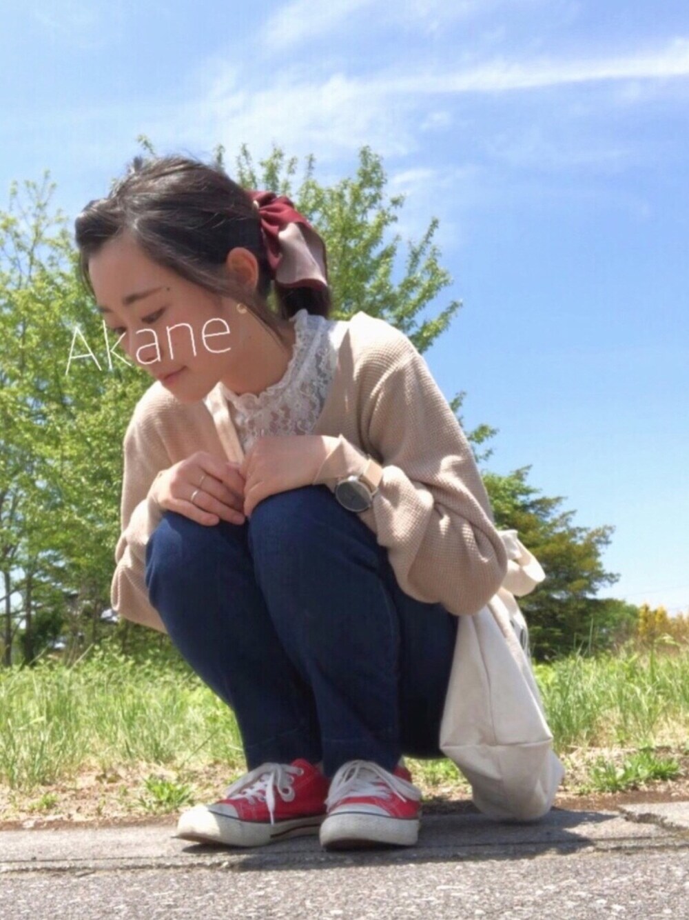28/10℃ ☀️ こんにちは😃🌷 2つ前の投稿と同じ場所で撮ったけど、 後ろにある木が随分と夏仕様になりましたな😳🌴 今日は珍しく土曜休み! だからといって普段となにも変わりませんが。 でも今日は、次の休みで絶対買うぞ と決めていたミキサーを手に入れました✨ これで毎日バナナジュース飲める🍌 私バナナそのままは嫌いだけど、 家でお母さんが作るバナナジュースは大好き😘 さて、今日はミキサー買いに行ったくらいのコーデなので 特段意識したことはないけども、 ・買ったのに大事に温めていた 赤いシュシュをつけました🎀 ・レースインナーが万能すぎていつも他のものと 組み合わせてたセットで使うのはお初なトップス🌸🌼 ・前髪がうまく決まらなくてポンパドールにしちゃった (結果元気そうでいい感じになった) そんな感じ! 今日この後は引きこもり〜✌︎ワラ またね!