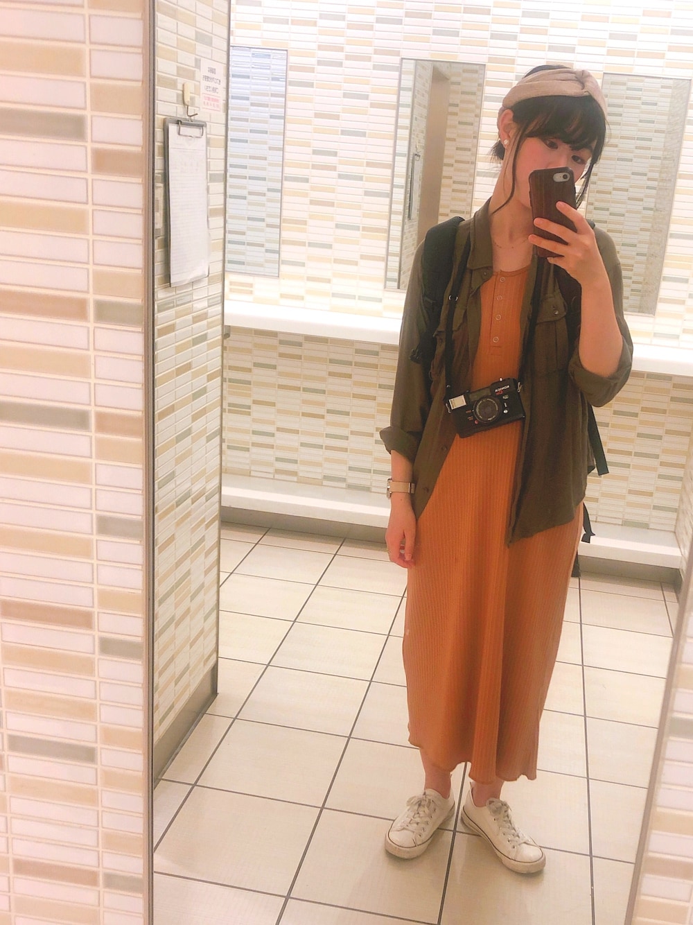 25/19℃ ☁️ らくちんこーで✌︎ こないだ首都圏周辺に帰った時の〜 フィルムカメラを買ったのでぶら下げてます。 古いカメラは見た目もレトロでおしゃれ💕 途中でフィルム切れたからただの重い飾りと化したけど(笑)
