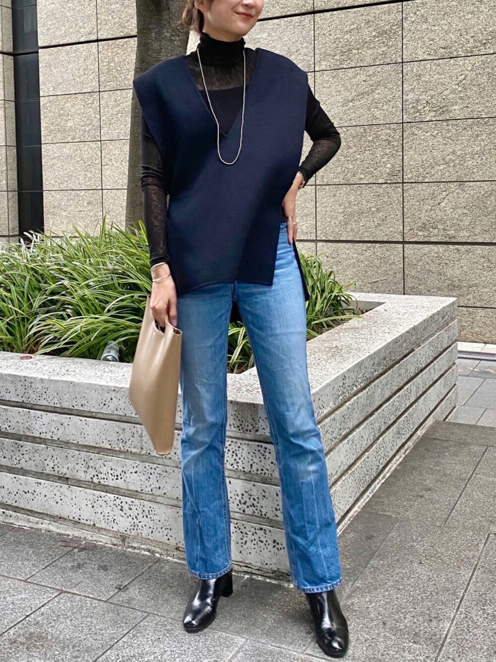 satomi(SHENERY梅田EST店)のデニムパンツ「センタープレスデニムパンツ」を使ったコーディネート