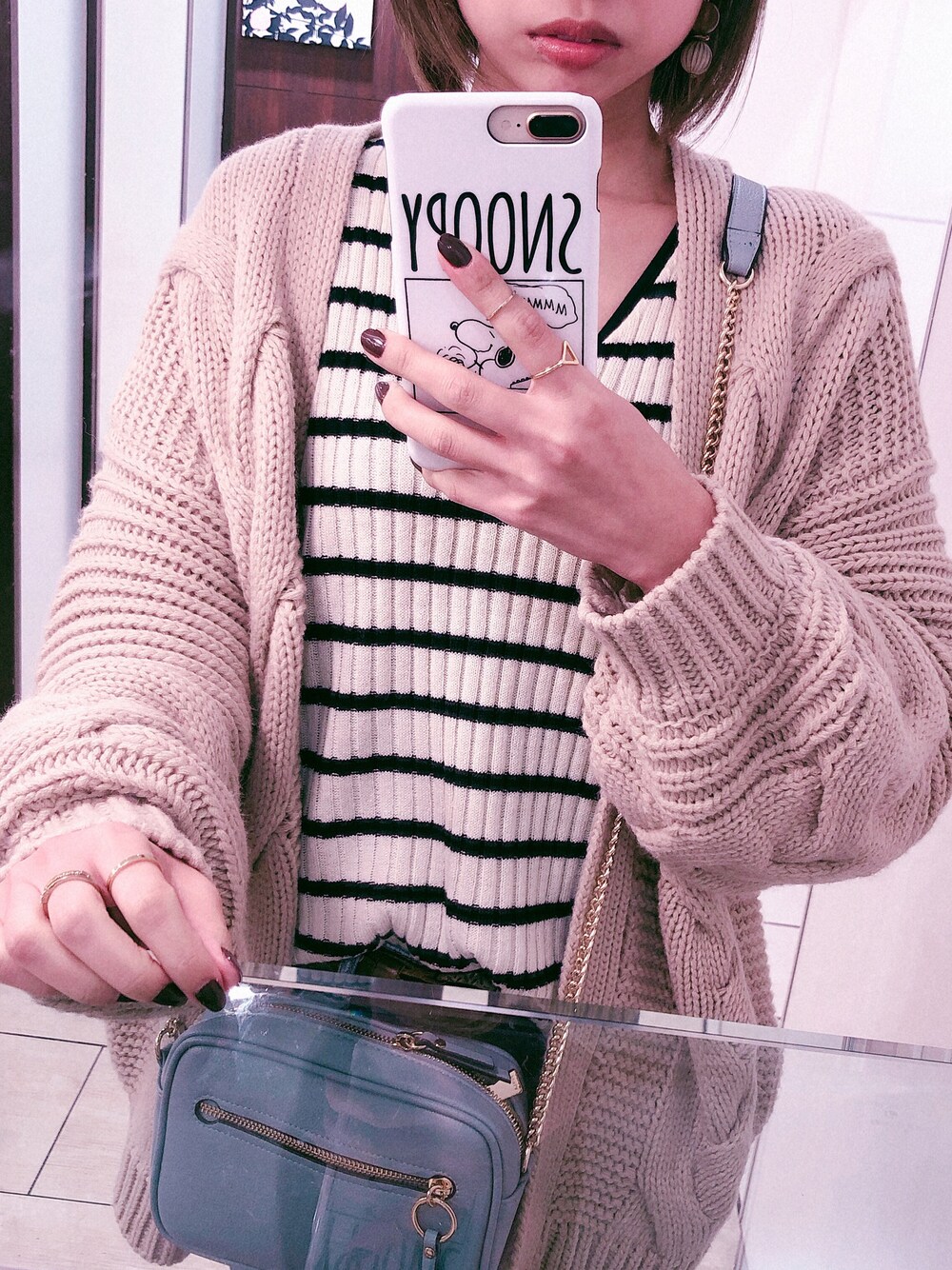 念願のニットカーディガンが 着てみたらさらに可愛かった❤️ リエディのトップスもかーわいいけど 若干寒かった…。