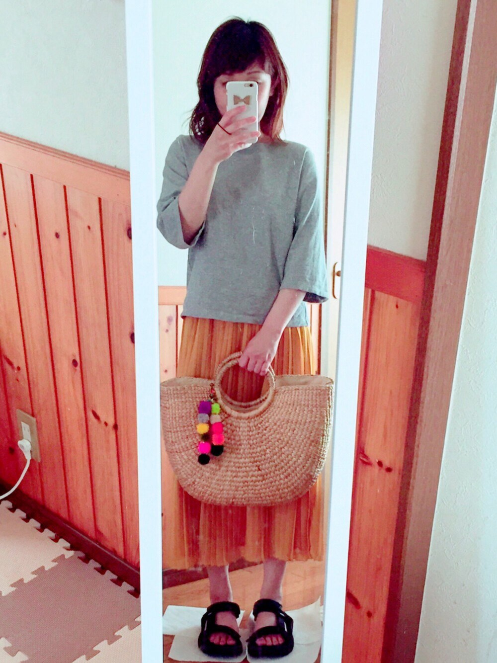 この前お出掛けした時のコーデです☺️ 子供達がいなかったので買っておいた お気に入りのかごバックでGO〜✊‼︎ やっと使えた😂🙌❤️ 可愛い〜😍😍❤️
