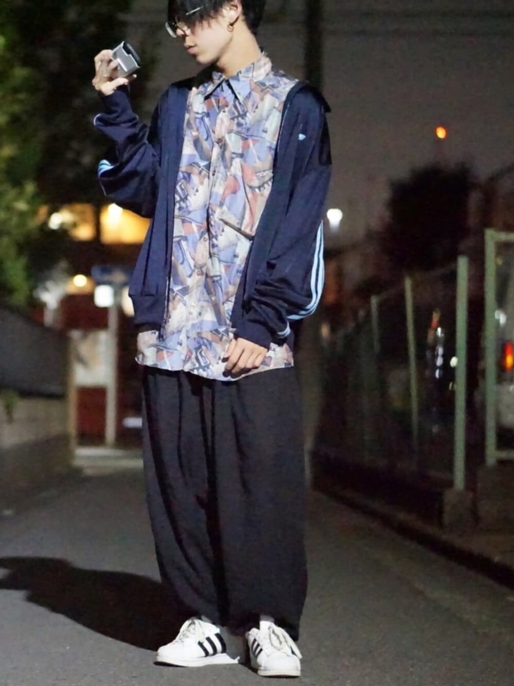 柄シャツ×ジャージコーデ😏 学校やたら冷房効いてる部屋のときとかすぐ羽織れるからジャージ万能すぎる。 Instagram→【rur000】 プロフィールにリンクあります! ジャージ→L 柄シャツ→L スニーカー→25.5 見にきてくれてありがとうございます😊 最近フォルダに入れてもらえることが増えたので嬉しいです😆