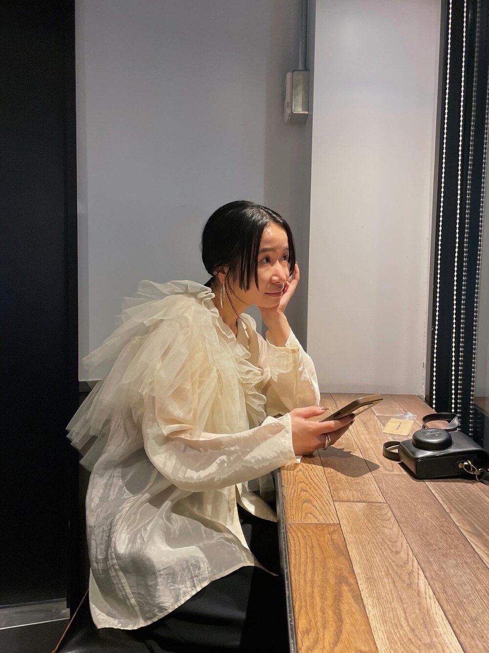 石黒晶のシャツ/ブラウス「開襟サテンルーズシャツ」を使ったコーディネート