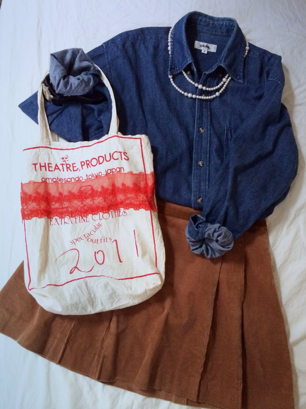 デニムシャツおとうさんのおさがりでごめんなさい。サイズ感がきにいっとるんですわ。