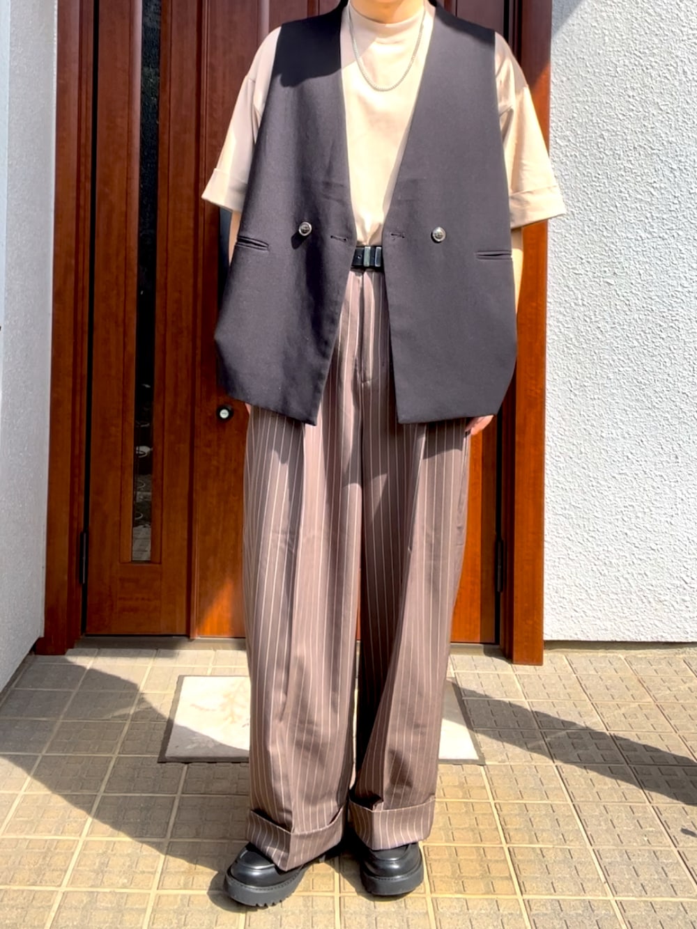 ご覧いただきありがとうございます😊 そしていつもいいね、saveありがとうございます☺️ 今回はセンスオブプレイスさんのテーラードジャケットとエプノックさんのストライプパンツを合わせたキレイめコーデになります! 最近はロールアップパンツにものすごく惹かれます🤭