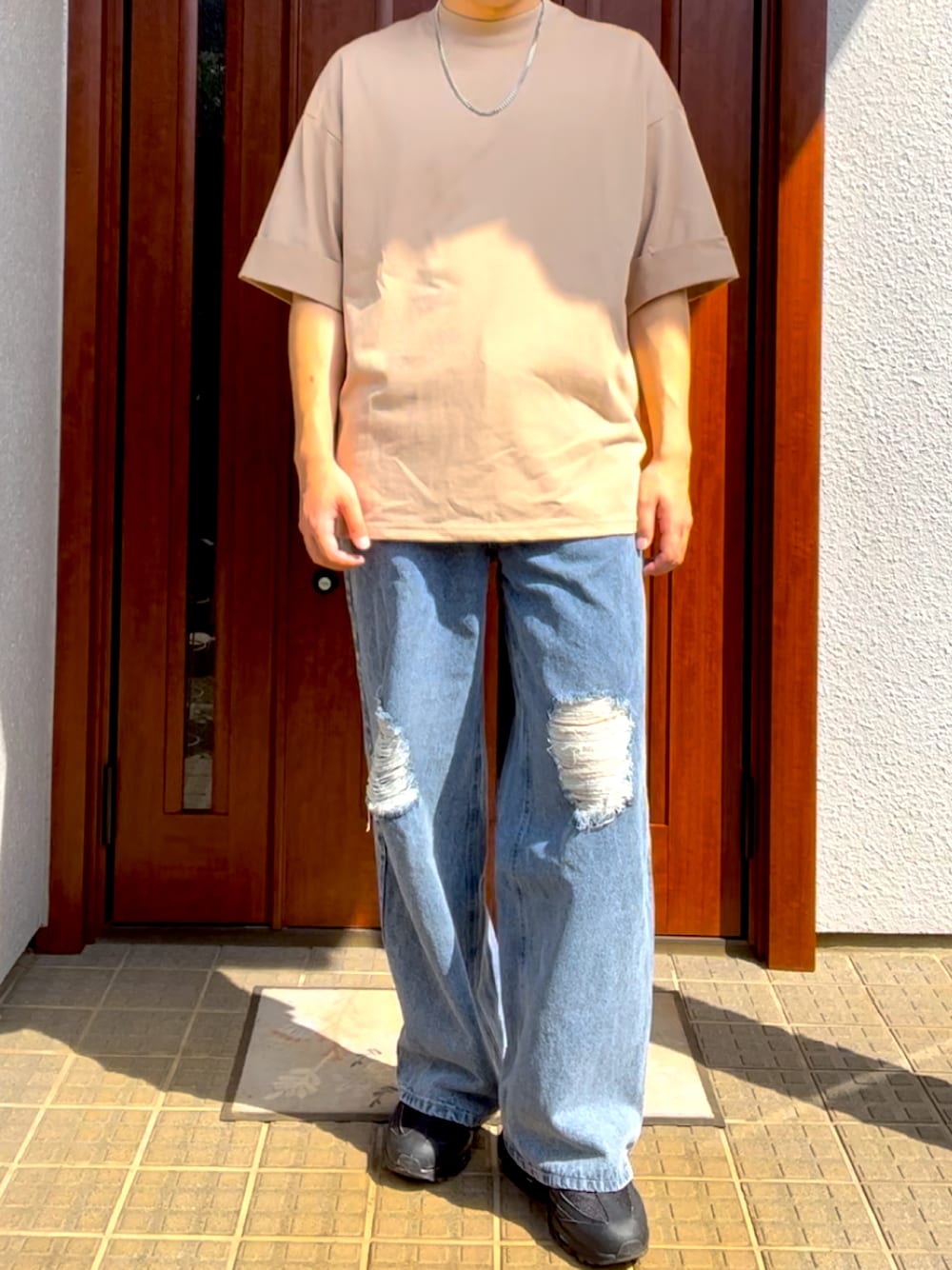 マルのTシャツ/カットソー「ロールアップ袖 モックネックTシャツ / Roll up Mock neck T-SHIRTS」を使ったコーディネート