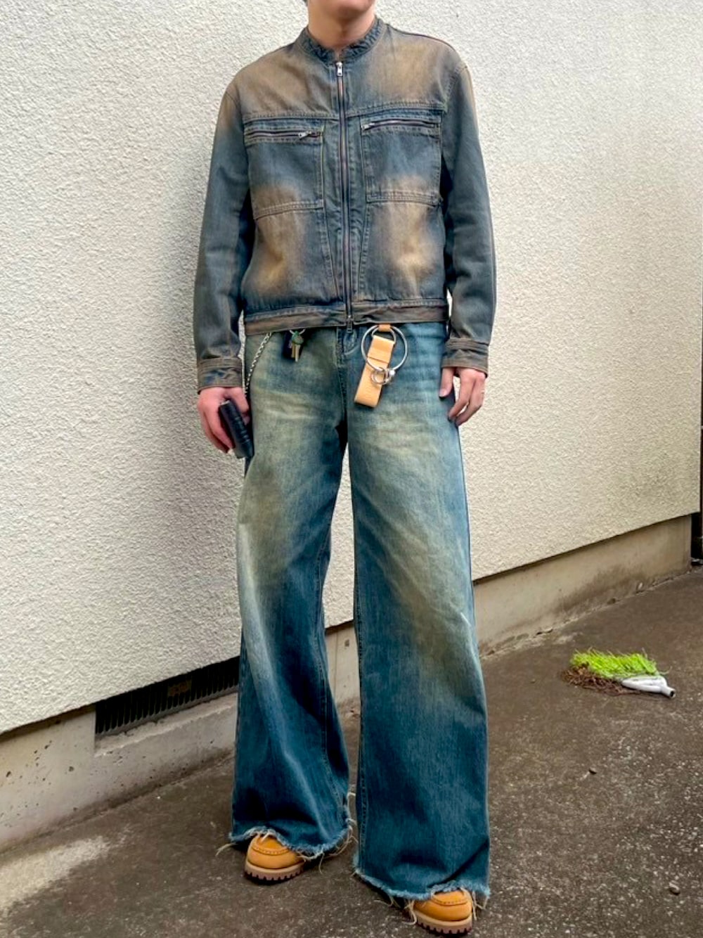 マルのデニムジャケット「VINTAGE WASHED DENIM ZIP MOTO JACKET」を使ったコーディネート
