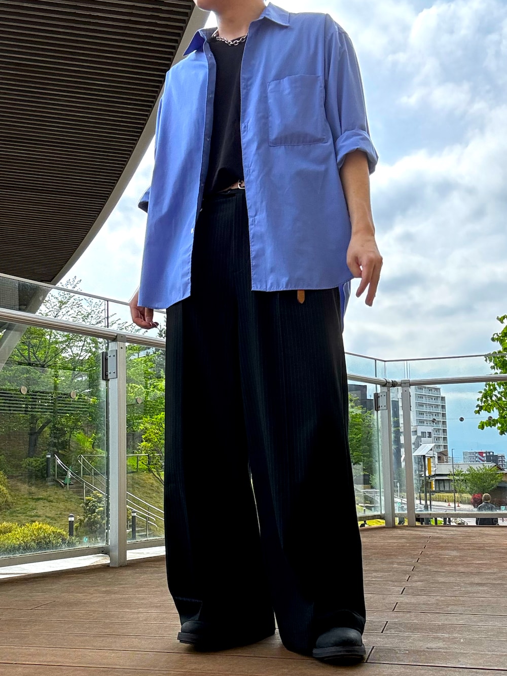 いつもいいねありがとうございます😊 気温も上がり過ごしやすい季節になりましたね! 今回は全体的に黒でまとめ、シャツで青色を取り入れました!