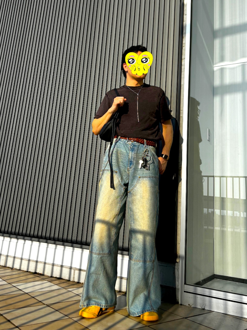 ご覧いただきありがとうございます! wymの新作をふんだんに使ったコーデになります!? 新作のデニムもバックも最高に好みです☺️ スニーカーに黄色持って来て差別化を図りました😁