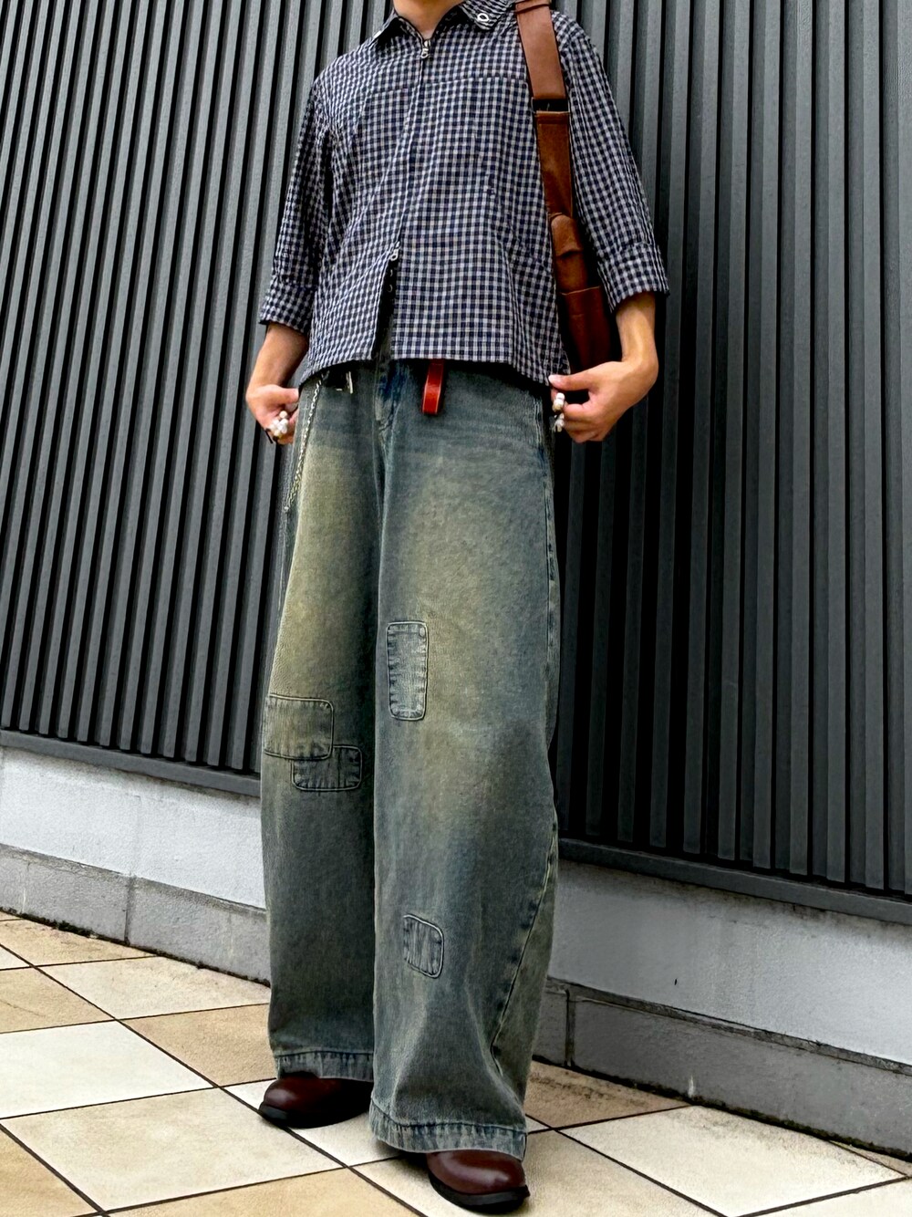 チェックのジップシャツとデニムの組み合わせが渋くて良き!😊