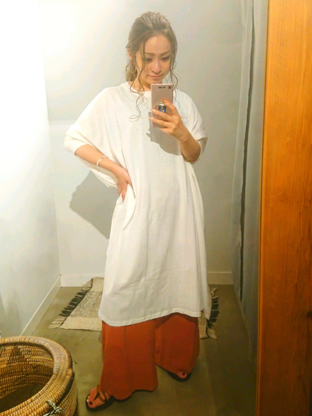 minomushiのワンピース「ワイドシルエットコットンTEEワンピース」を使ったコーディネート