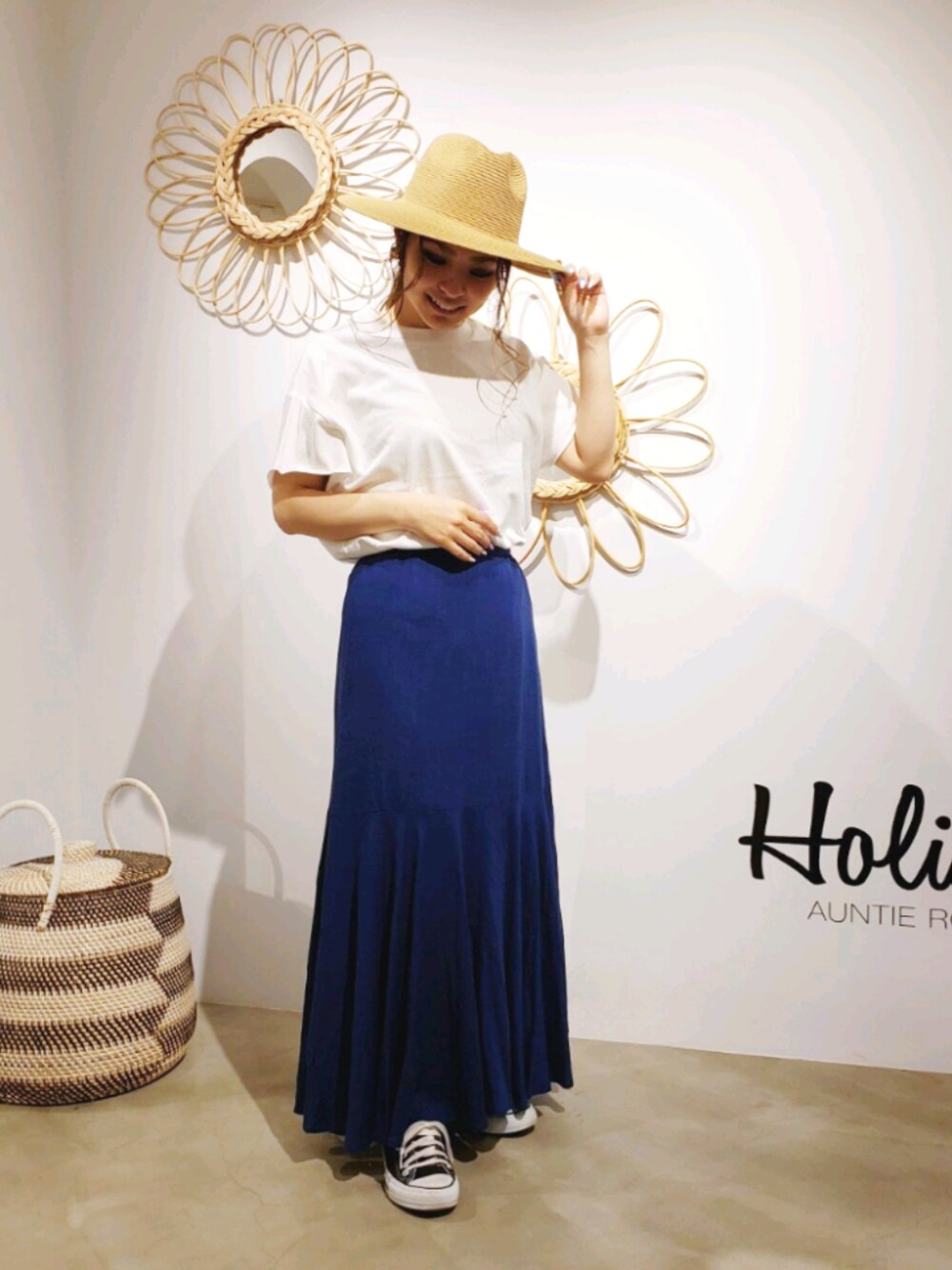 minomushiのスカート「リネンレーヨンマーメイドロングスカート」を使ったコーディネート
