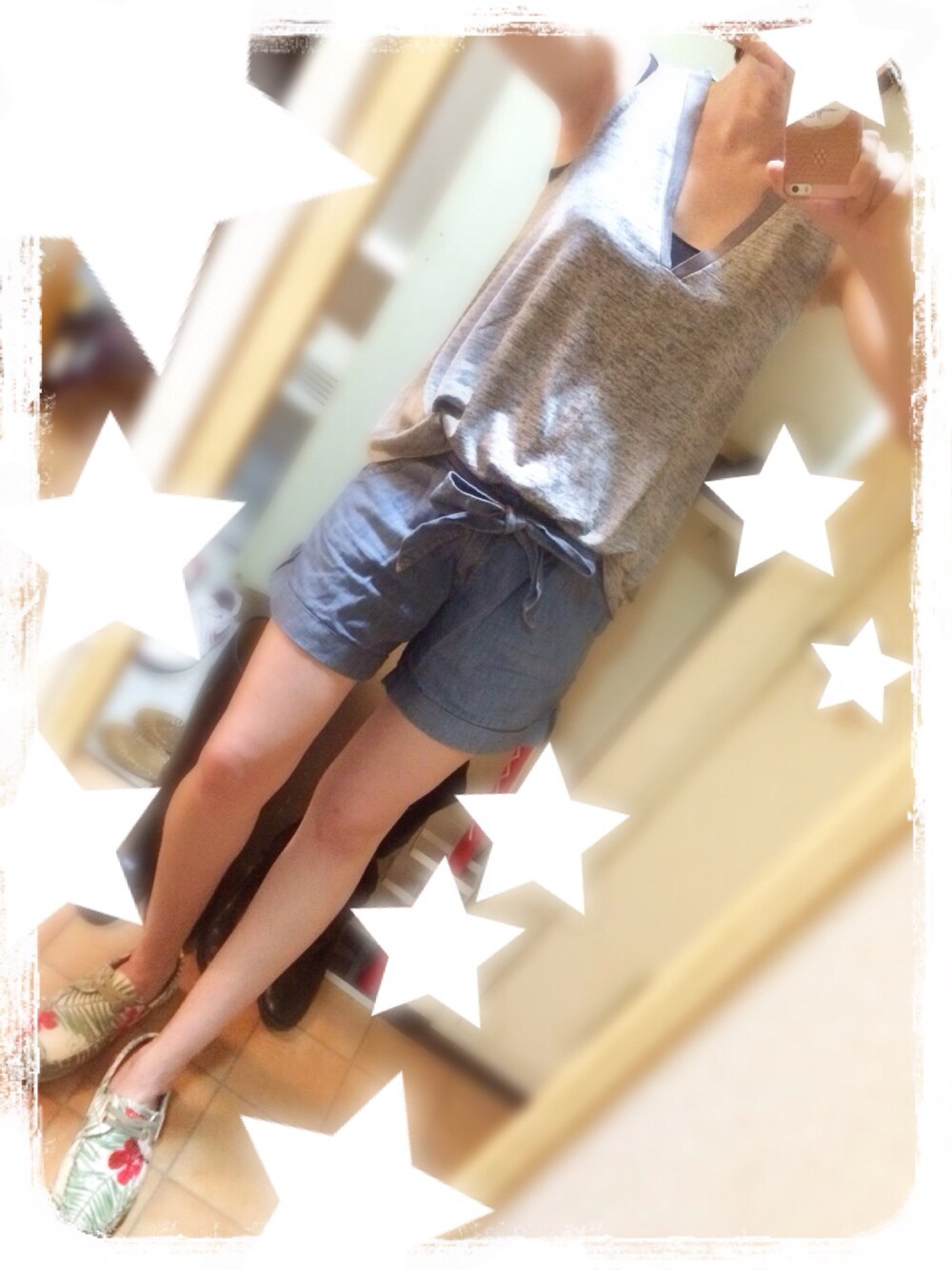 夏らしく。 ショートカットが ショートパンツ履くと 少年にしかみえないと 連れが言うので御蔵入り。 とりあえず記念に。