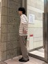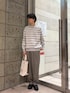 DOORS新作RenewKnit×完声BOTTOMを使ったコーデです! 春らしいカラーで年齢問わず着用できるかと!