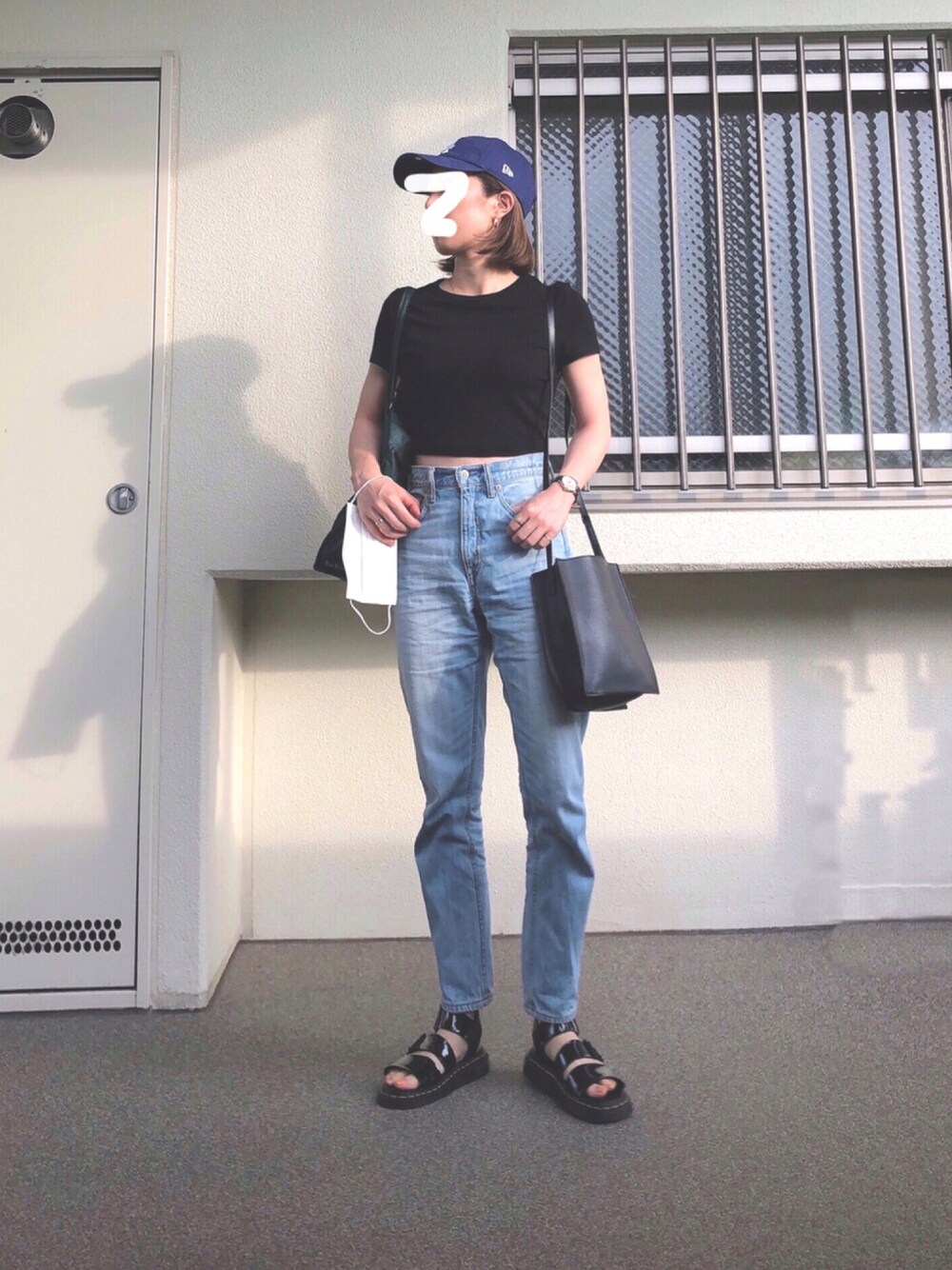 👕 ZARA / クロップド丈トップス / black / M 🧢 LA 動き回らなきゃいけなかった今日 どカジュアル デニムはウエストお直ししてます〜