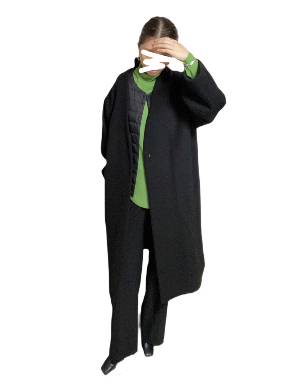 110’92のノーカラーコート「ショートビーバーノーカラーコート/806050」を使ったコーディネート