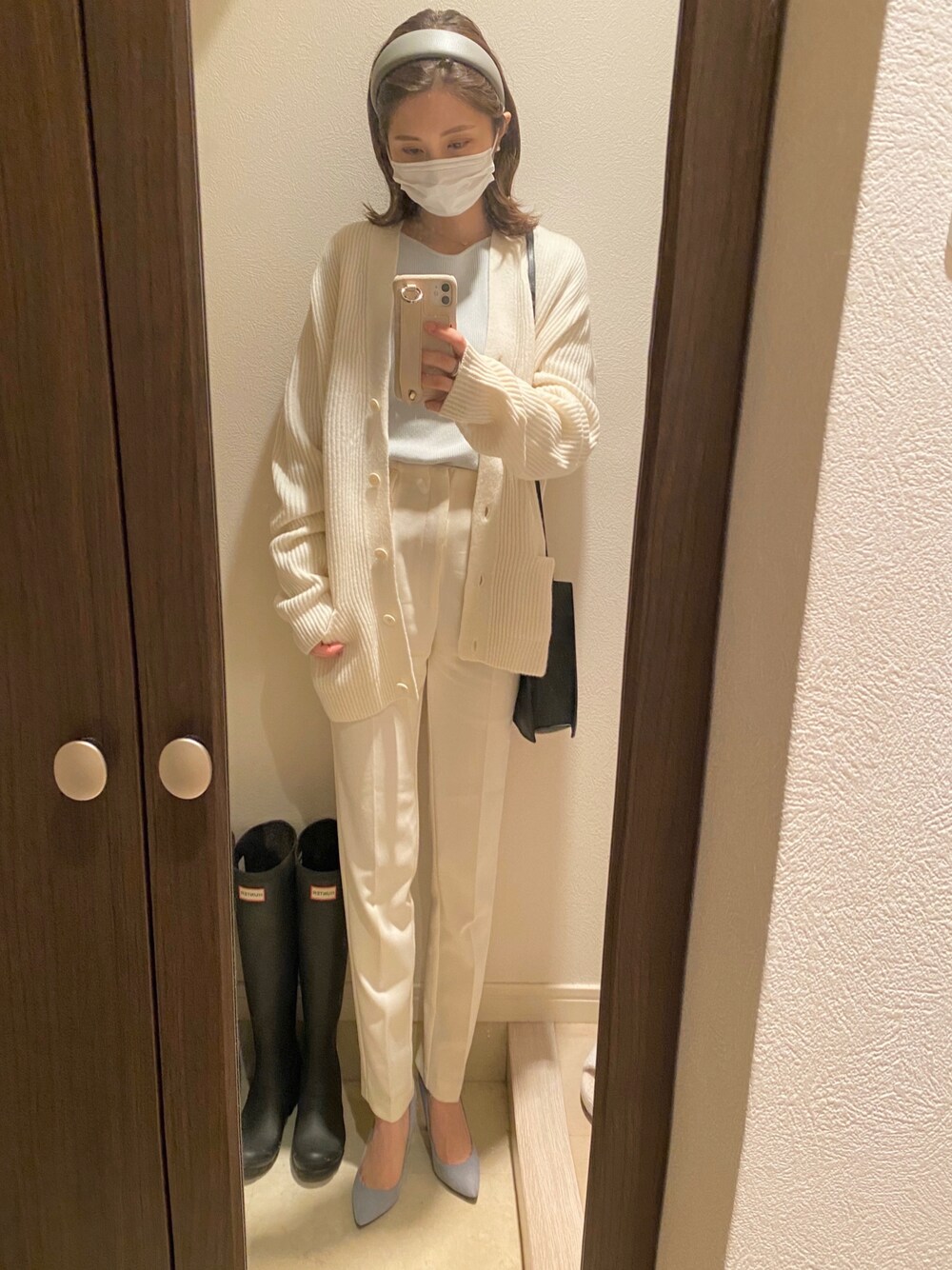 見て頂きありがとうございます。 最近12〜13度くらいの気温の日もちらほら 春らしいカラーでまとめました 淡いカラーでまとめるとカチューシャでも 前回とは変わって女性らしさ強めになりますね👌 カチューシャが楽すぎて手に取りがちです🥲