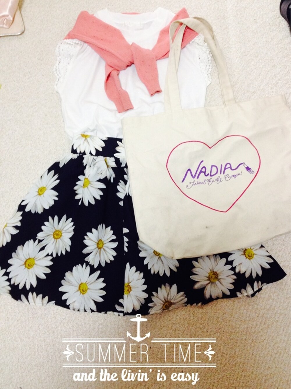 サマーコーデ♡ アイズビットのスカートはフワッと女子らしくお気に入り(◍•ᴗ•◍) ジーナのトップスは袖がかわいくて着るとシルエットが綺麗なのが優秀! 荷物の多い日だから大きめのトートで大学へ〜 ゼミ頑張るしかない