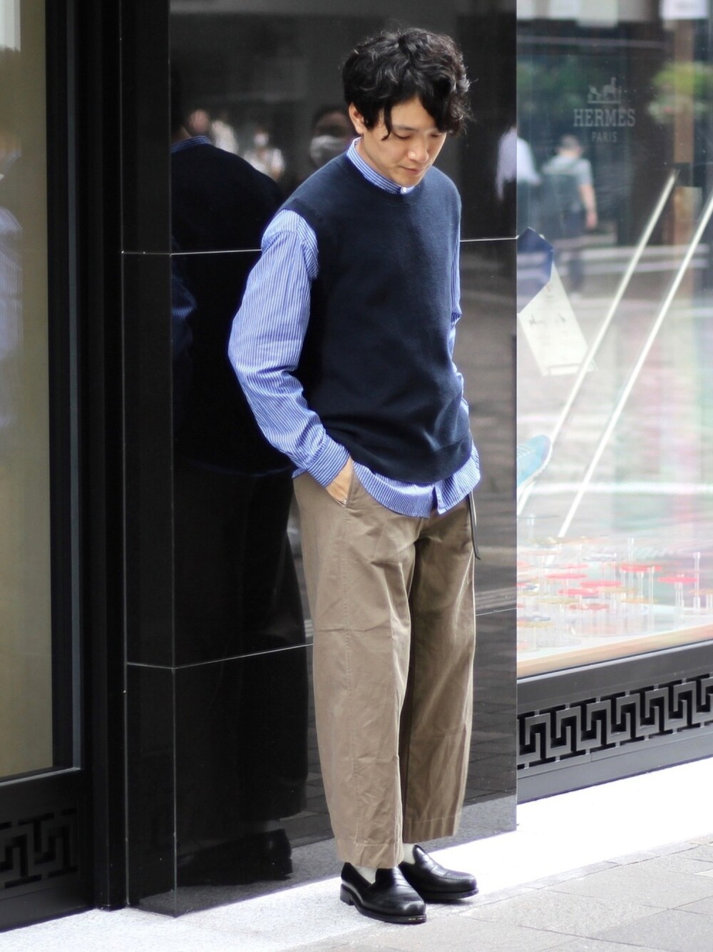 tom🐶のニット/セーター「オーバーサイズクルーネックベスト」を使ったコーディネート
