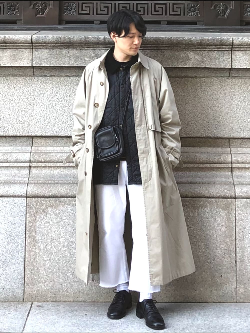 ●ロングトレンチコート● ロングな丈感にするだけで 一気に雰囲気出ますよね! キルティングジャケットをインナーに 組み合わせたスタイリング😊 ホワイトデニム