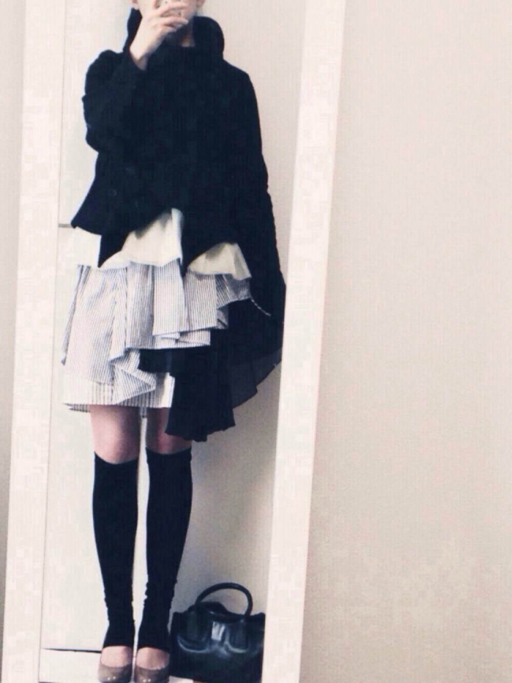 今日のコーディネートのポイントはひらひらのストライプ柄のスカートです‼️ 自分ではちゃんとはけるかなぁ〜って不安だったけど、旦那から勧められて購入✌️地味なコーディネートが多い私にはない着こなしができてよかったです✨ いつもはタイツがほとんどなのですが、春ということで靴下もちょっとした挑戦です✊