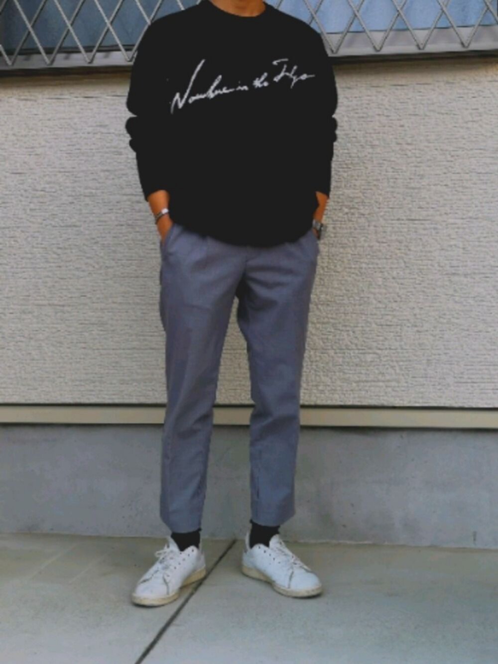 レタリングされてる黒ジャガードニット流行りですね!😀 手軽に買えたこのニットは非常によかったです!🤩🤣