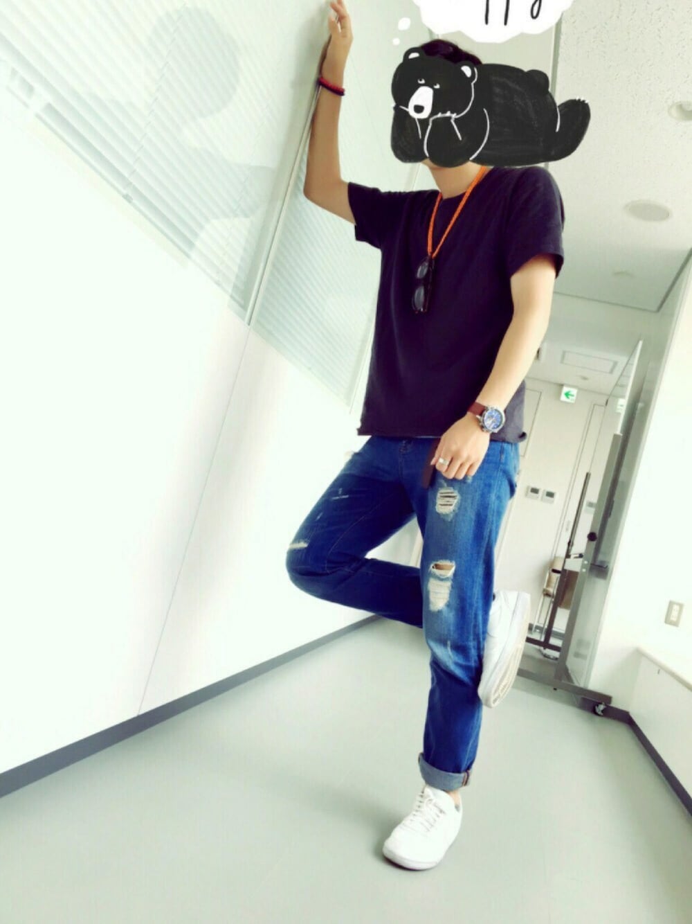 今日も暑いのでサマースタイル。 Tシャツにロールアップに白スニーカー めっちゃラフで過ごしやすい とにかく暑い…