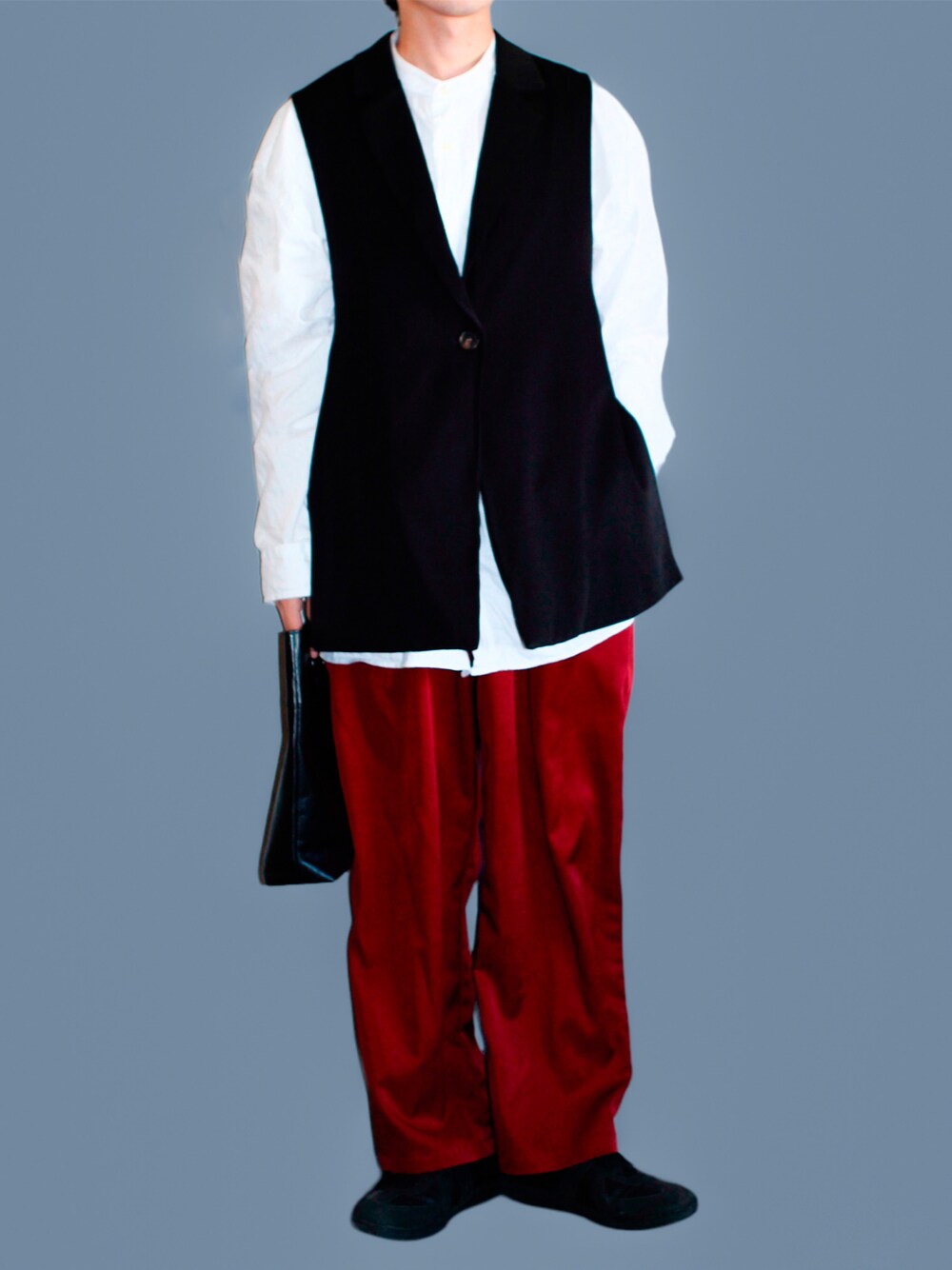 トッティのベスト「WEB限定 サイドベルト付きジレ セットアップ着用可」を使ったコーディネート