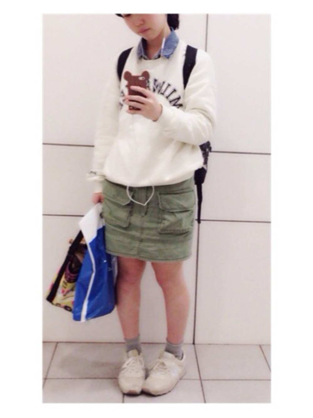 母のお下がりはトレーナーとよく合います。 だからとっても楽です。 トレーナーは古着です。部屋着としても着てます。愛犬の散歩にも着て行きます。遊びにも着て行きます。出勤にだって着て行きます。 少し汚れが目立ってきました。 まだまだ着ます。