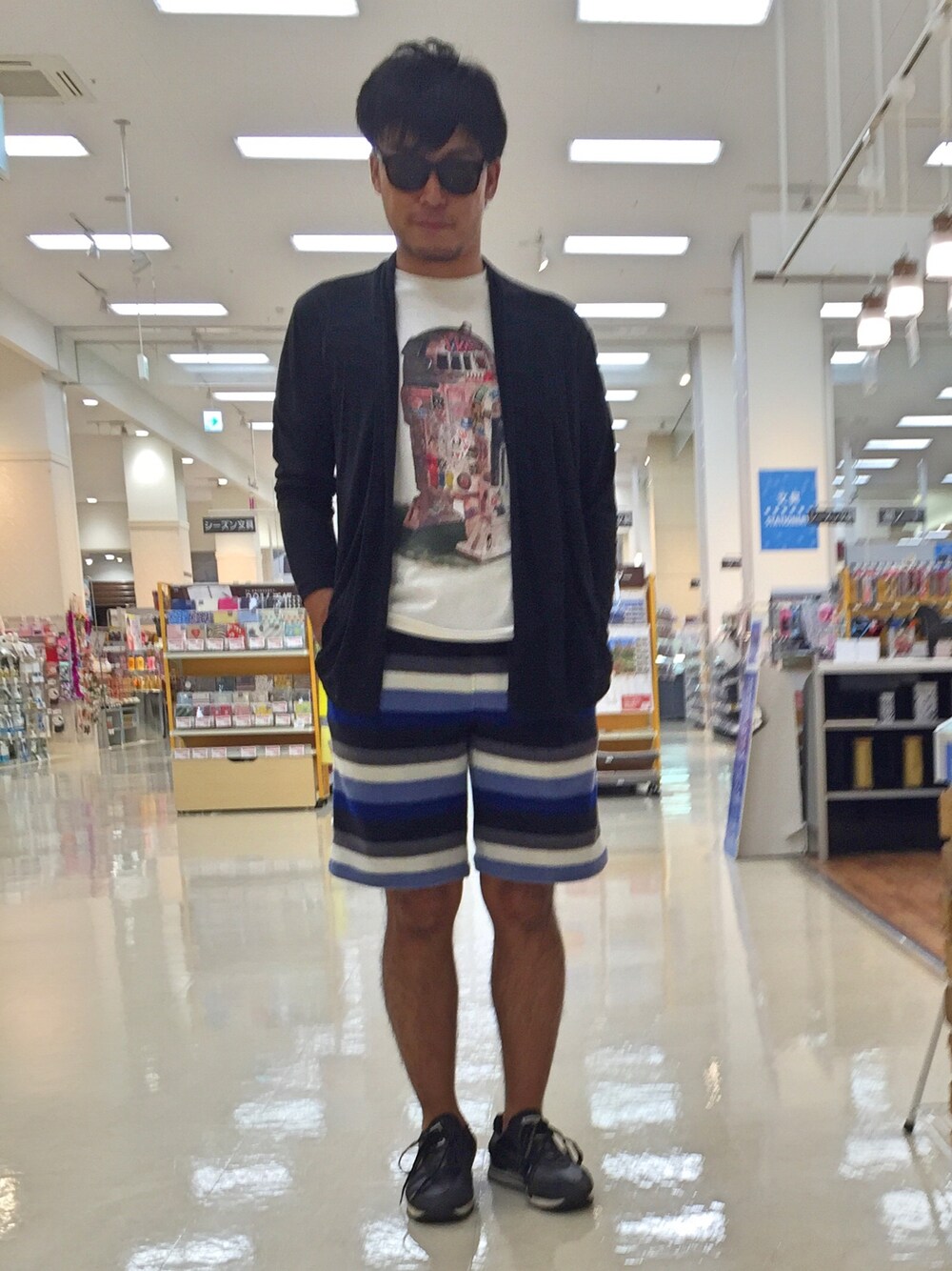 涼しくなってきましたが、ハーフパンツでがんばりたいので、ある程度冷えても大丈夫なフリース素材のボーダー柄のハーフパンツでコーデしました。